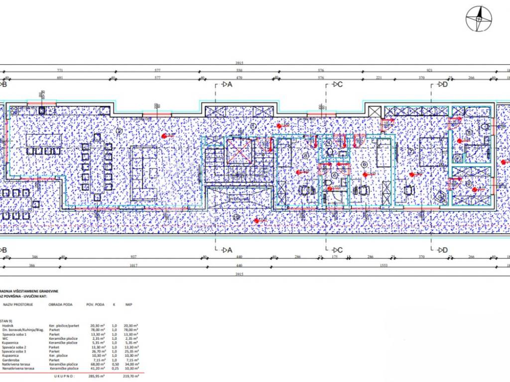 A standout feature of this penthouse is the private elevator with direct, key-controlled access into the apartment, ensuring maximum discretion and the feeling of occupying an entire private floor, without shared corridors or passing residents. The apartment offers a total gross area of 285.95 m, with a net usable area of 219.70 m. The layout is exceptionally functional, with a clear separation between the living and sleeping areas. The living area consists of a spacious and bright open-plan living room connected to the kitchen and dining area, while the private zone includes three comfortable bedrooms, two bathrooms, a separate guest toilet, a walk-in wardrobe and a hallway. The space is further enhanced by a large covered terrace and an additional uncovered terrace, ideal for relaxation, social gatherings and enjoying complete privacy. The layout can be customized according to the buyers wishes, subject to agreement with the developer.