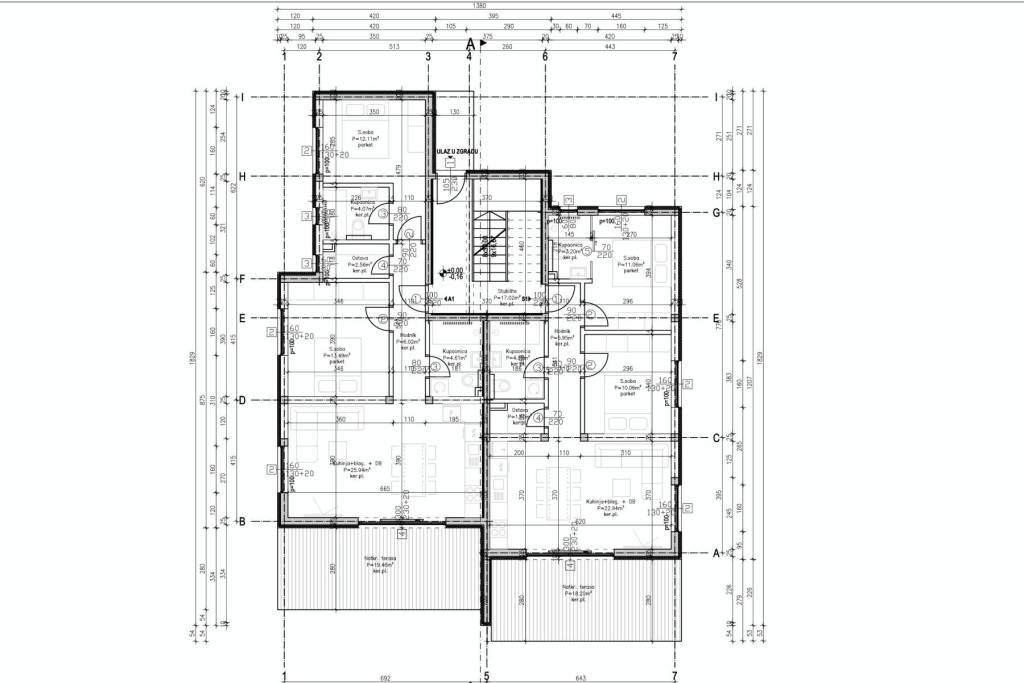 Apartment A-1 - ground floor - living area 68.80 m2 (2 bedrooms + 2 bathrooms) + covered terrace (19.46 m2 - W) + garden (78 m2) + 2 x outdoor parking spaces PM1 and PM2, total net area 92.60 m2 = 334,000 EUR