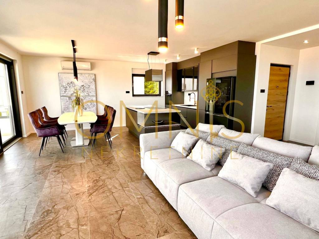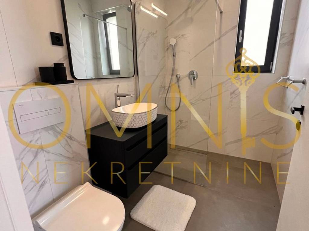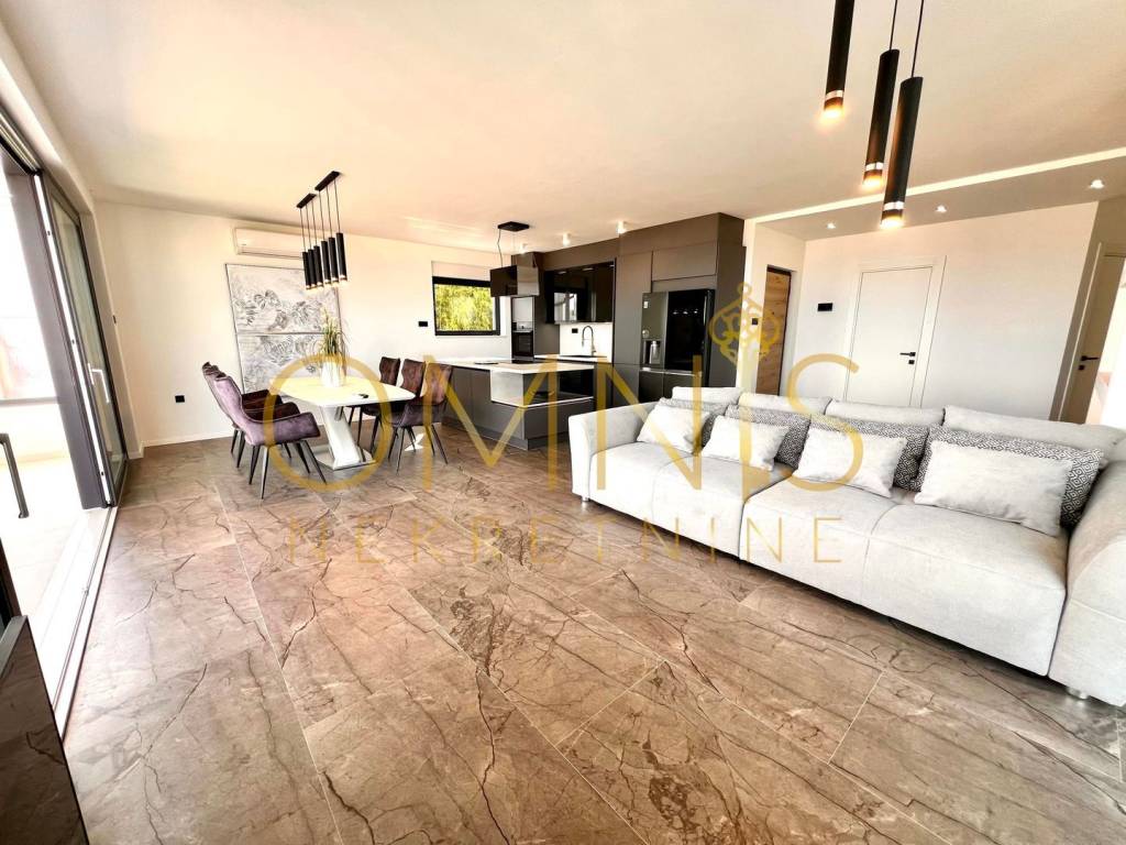 Iznajmljuje se trosoban luksuzan stan 200 m od mora u novogradnji, potpuno namješten, podno grijanje, dizalica topline. Tri sobe s kupaonama, dnevni boravak OPEN space. Stan je površine 150m2 s pogledom na more iz svake prostorije i potpuno je klimatiziran. Mirna lokacija u blizini svih urbanih sadržaja. Za sve ostale informacije i razgled stojimo na raspolaganju.