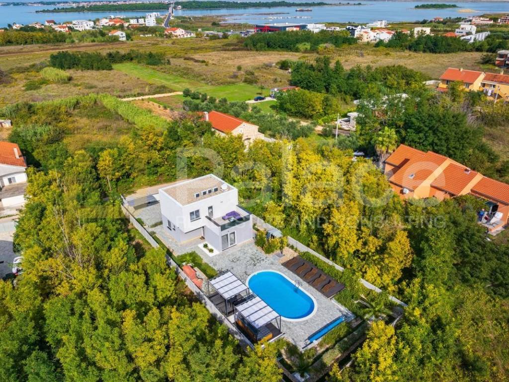 For sale is a beautiful, fully furnished villa with a pool, located in an extremely quiet location in Privlaka, just 800 meters from the town center. The villa is surrounded by Mediterranean greenery, providing complete privacy and peace, while being only a few minutes" walk from the sea and a well-kept beach, making it ideal for both family living and tourist rental.