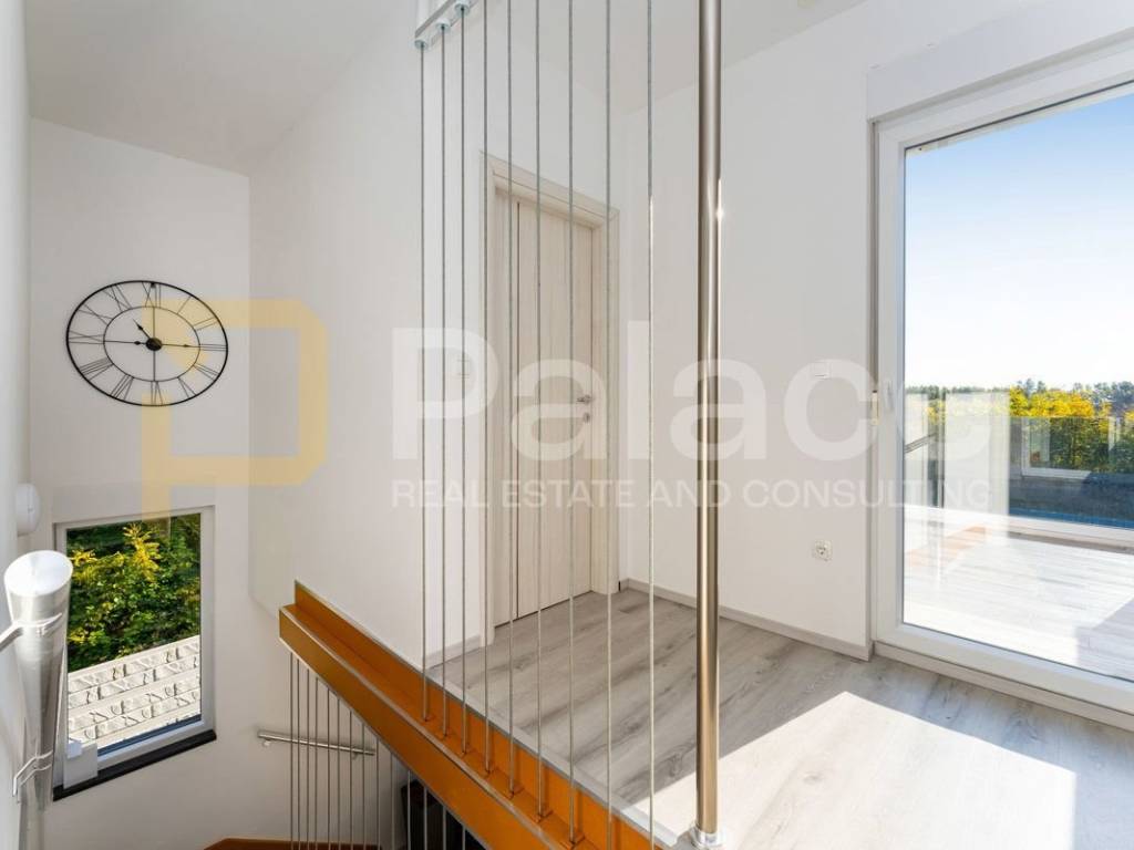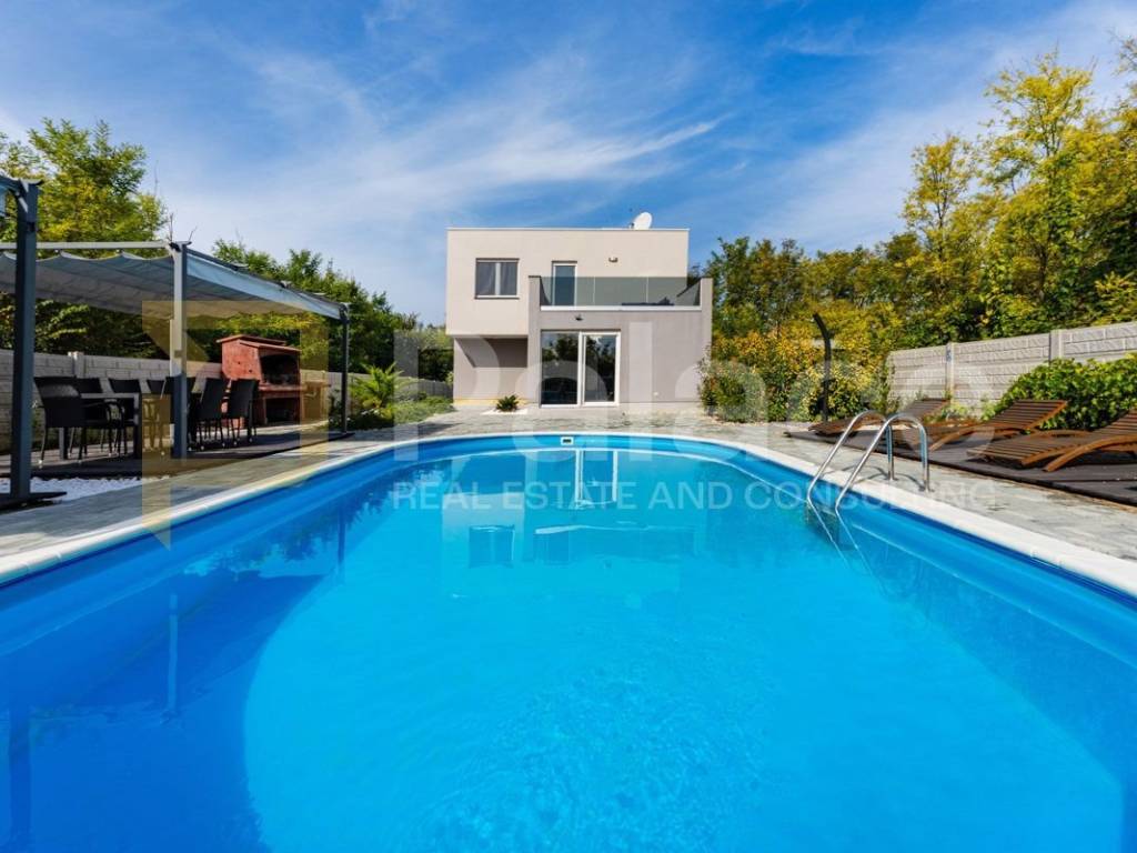 The house is built as a completely concrete structure and has an energy certificate A+/A. It is situated on a plot of land with a total area of 1,040 m², of which 528 m² is in the construction zone where the house and pool are located, while 512 m² is in the agricultural zone. The property has an installed bio purifier Vedar with a capacity of 5,000 liters, suitable for the daily stay of six to eight people.