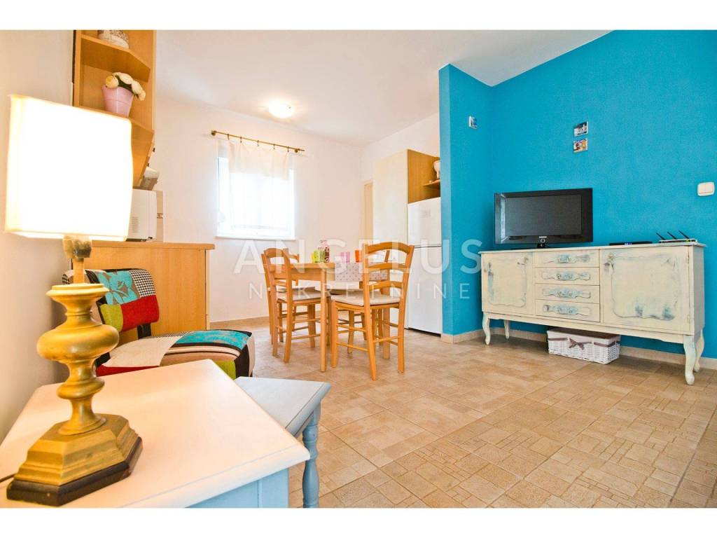 DESCRIPTION The one-bedroom apartment is located on the ground floor of a small residential building built in 2007. It consists of an entrance area, a living room with a kitchen and dining room, a bedroom, a bathroom (total 34.73 m2), a balcony with access from the living room (total 3.23 m2) and a smaller one with access from the bedroom. It is west-facing. The apartment also has an outdoor parking space (total 12.50 m2).