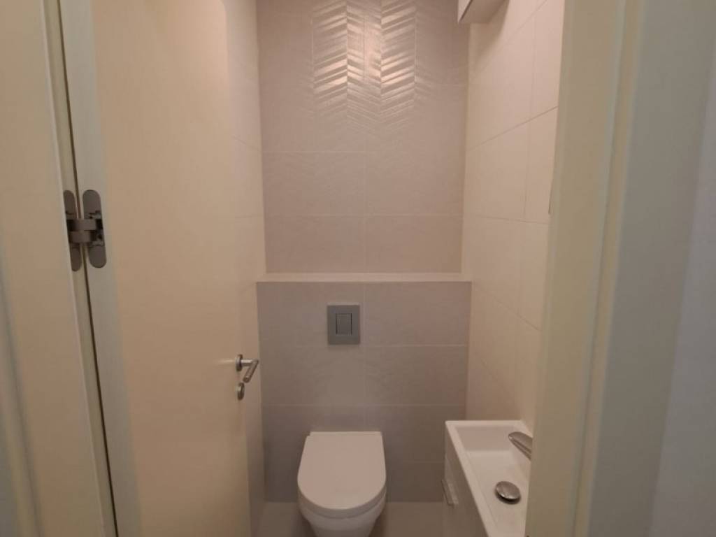 Ima potpuno opremljenu čajnu kuhinju (hladnjak, perilica suđa, indukcijska ploča, napa, pećnica) i dva sanitarna čvora.