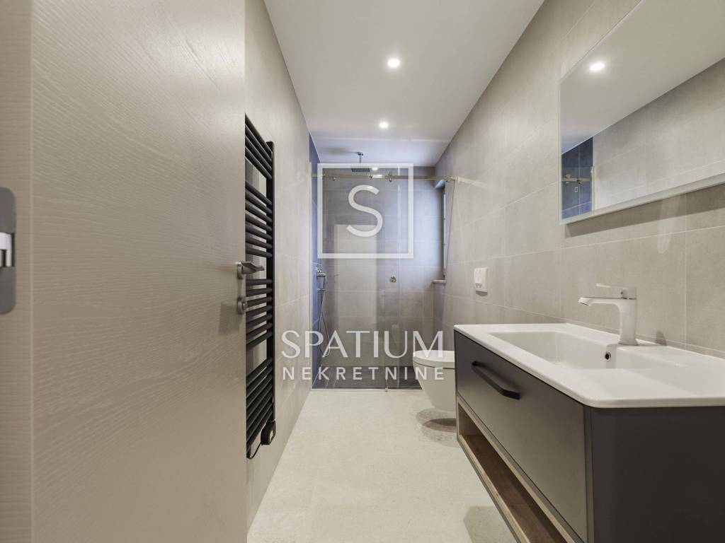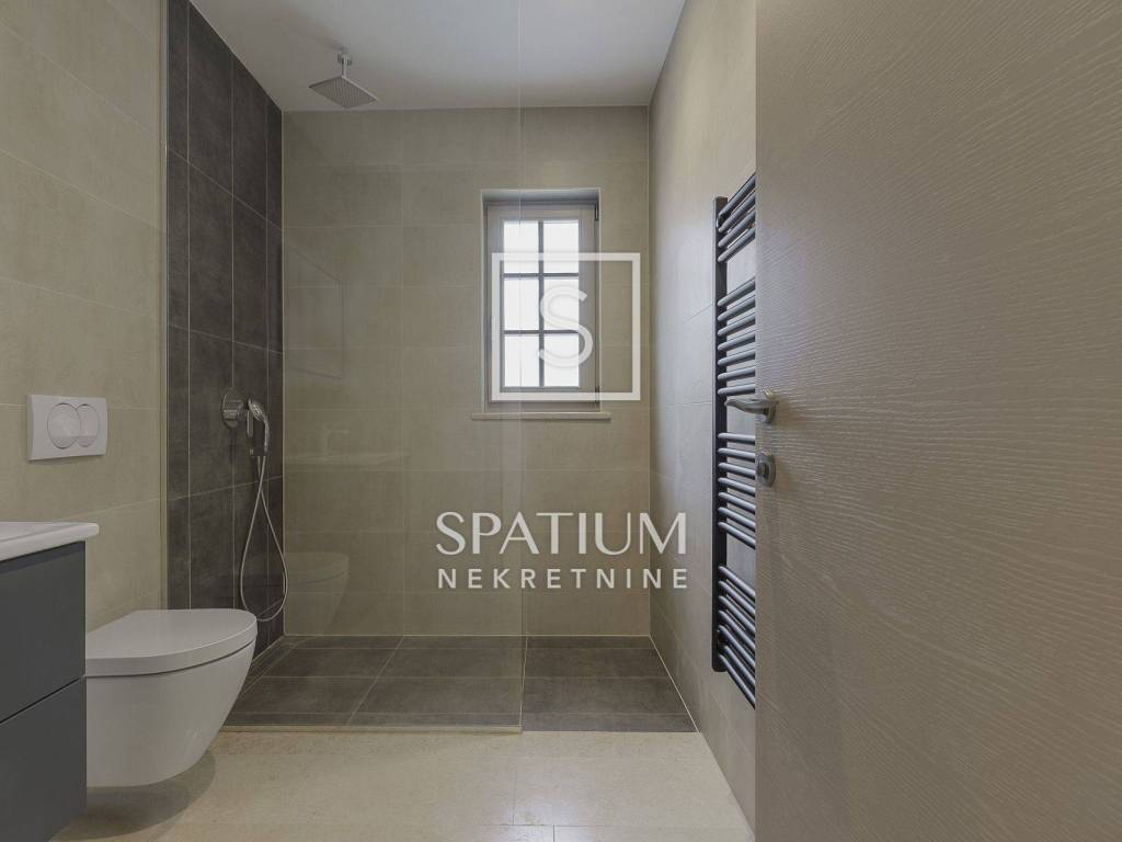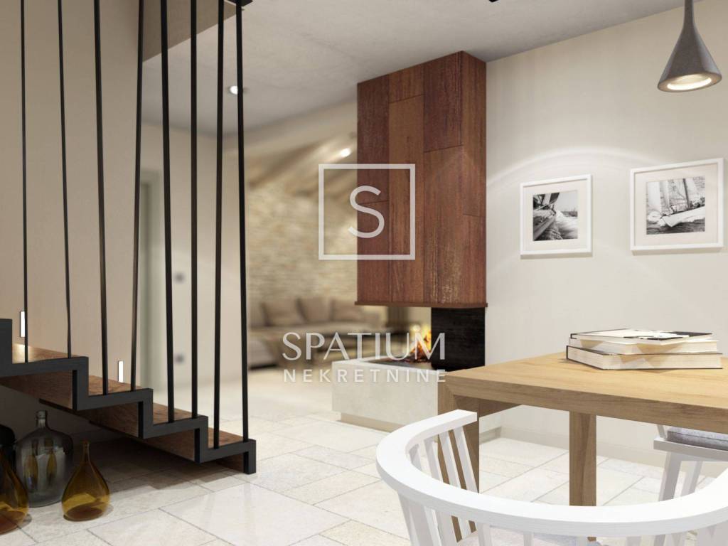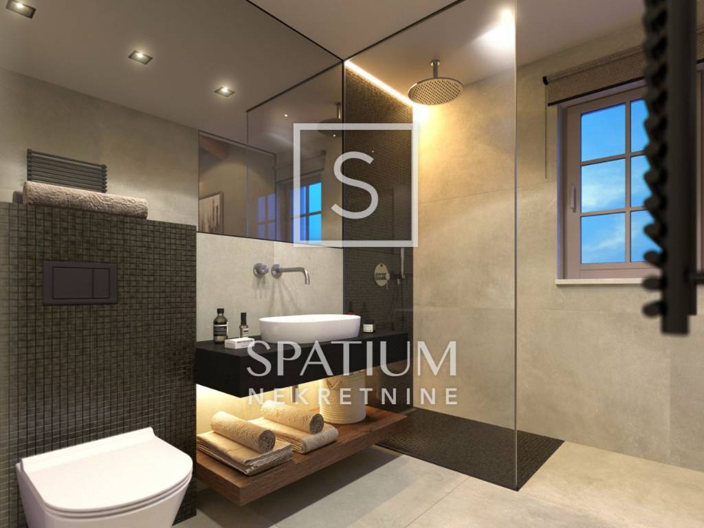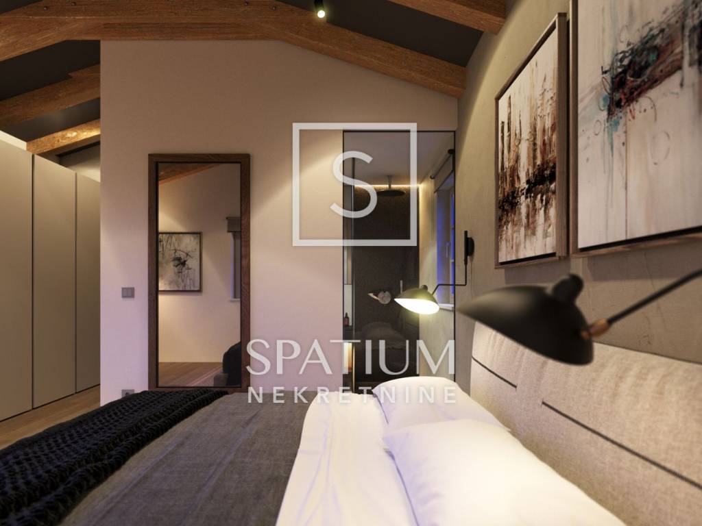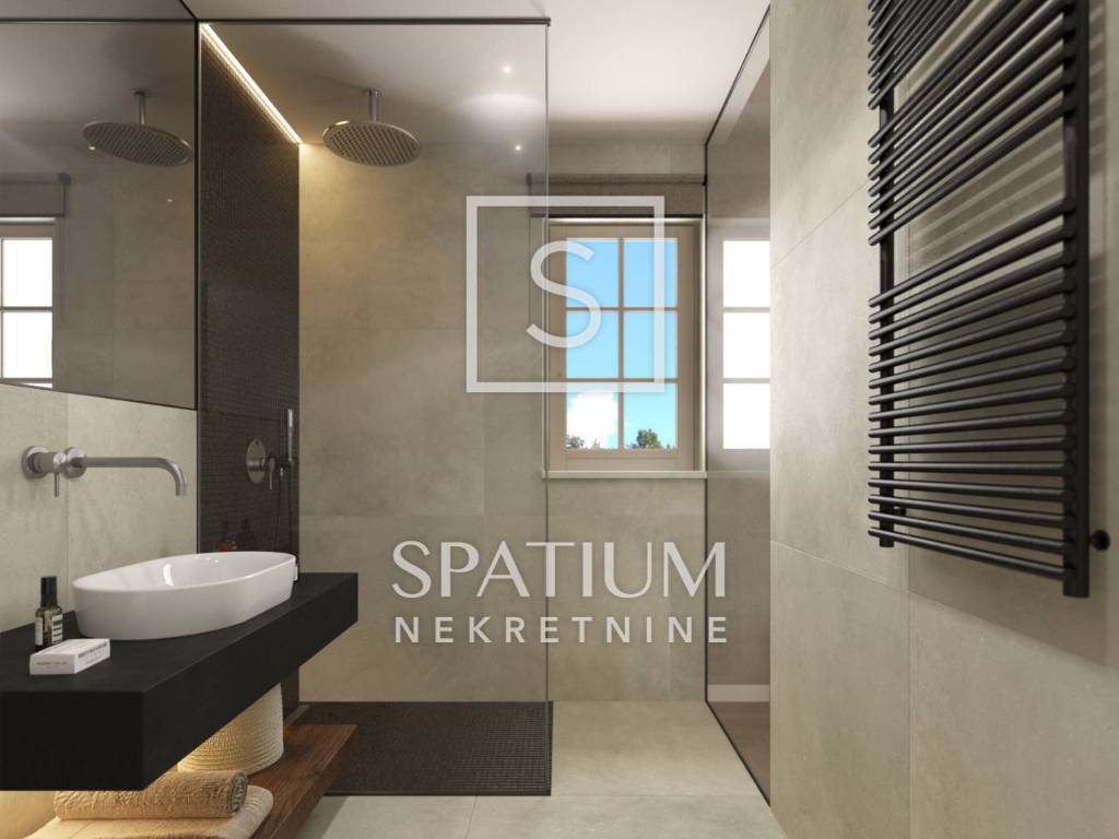 The upper floor (75.20 m²) includes three bedrooms, each with its own en-suite bathroom, designed with special attention to detail — combining high-end materials and authentic Istrian charm.