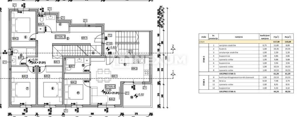 Apartment marked S3 is located on the second floor of a smaller building and has a total net usable area of 180.51 m², of which the interior living space is 99.19 m² and the terrace measures 81.32 m².