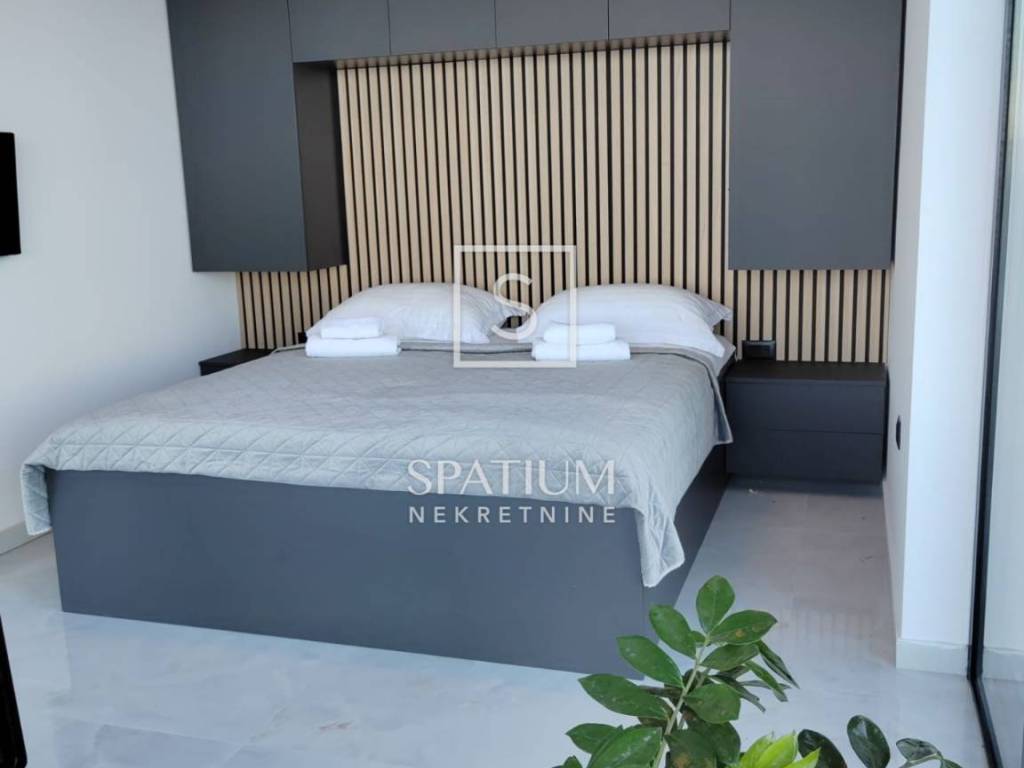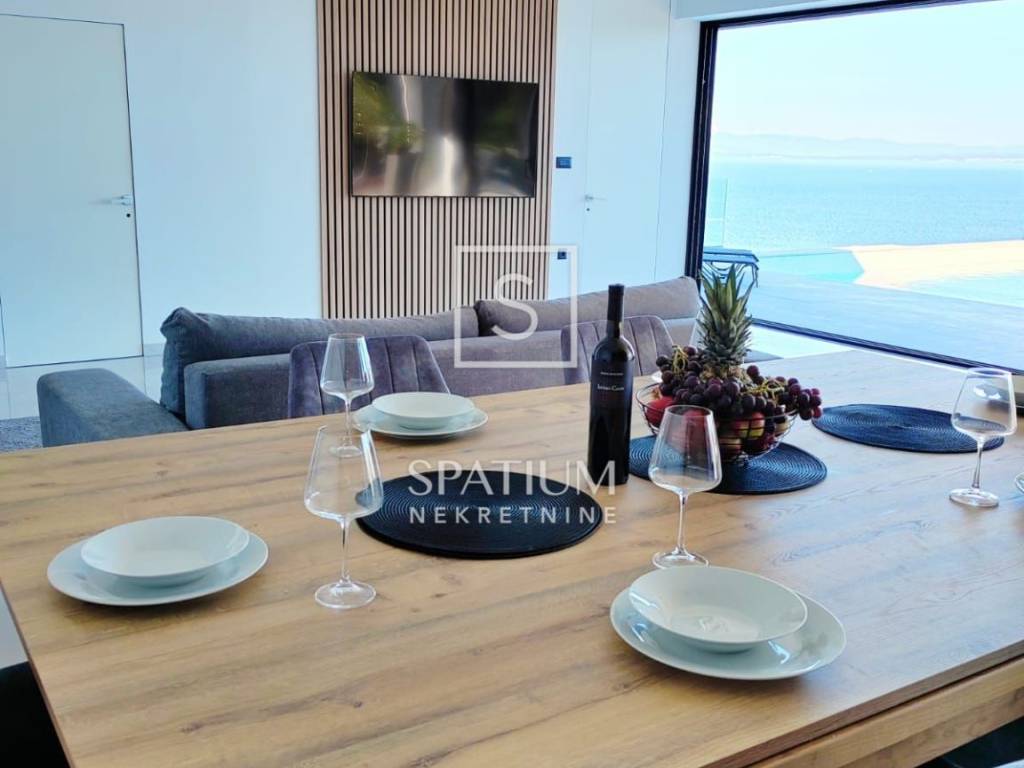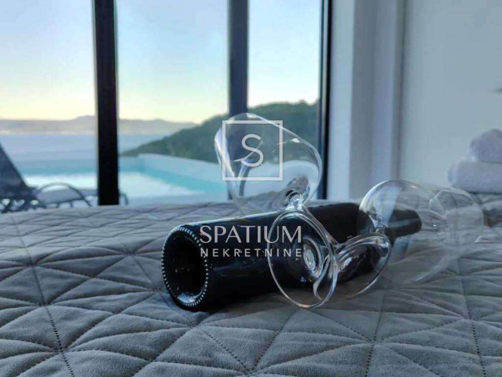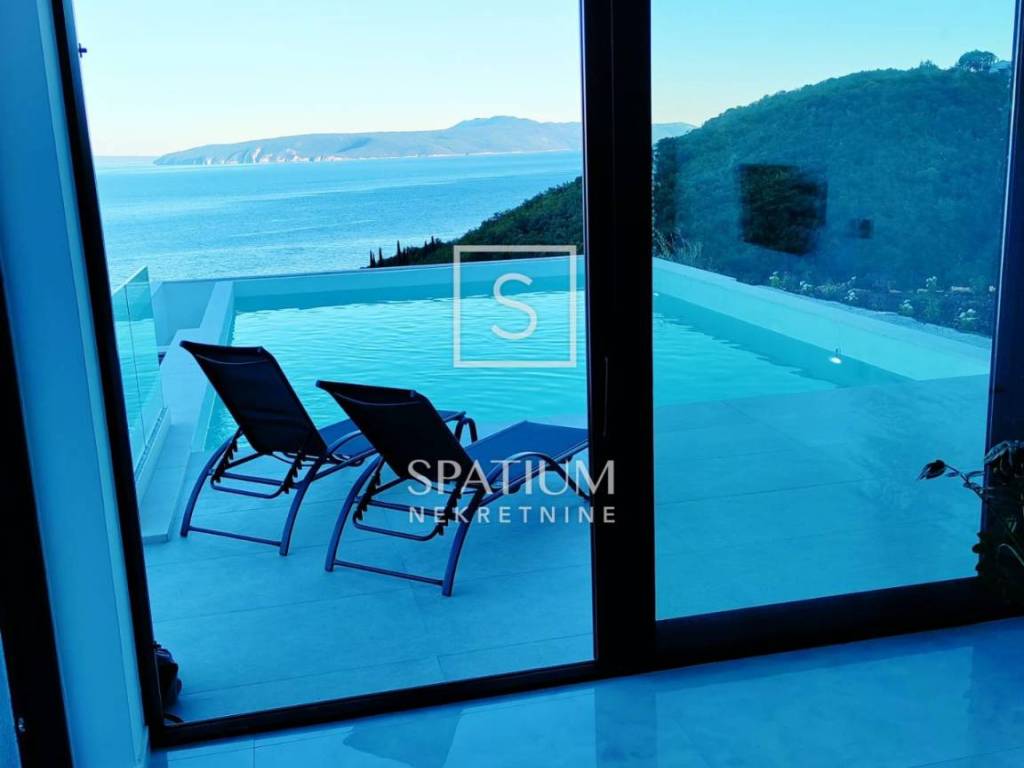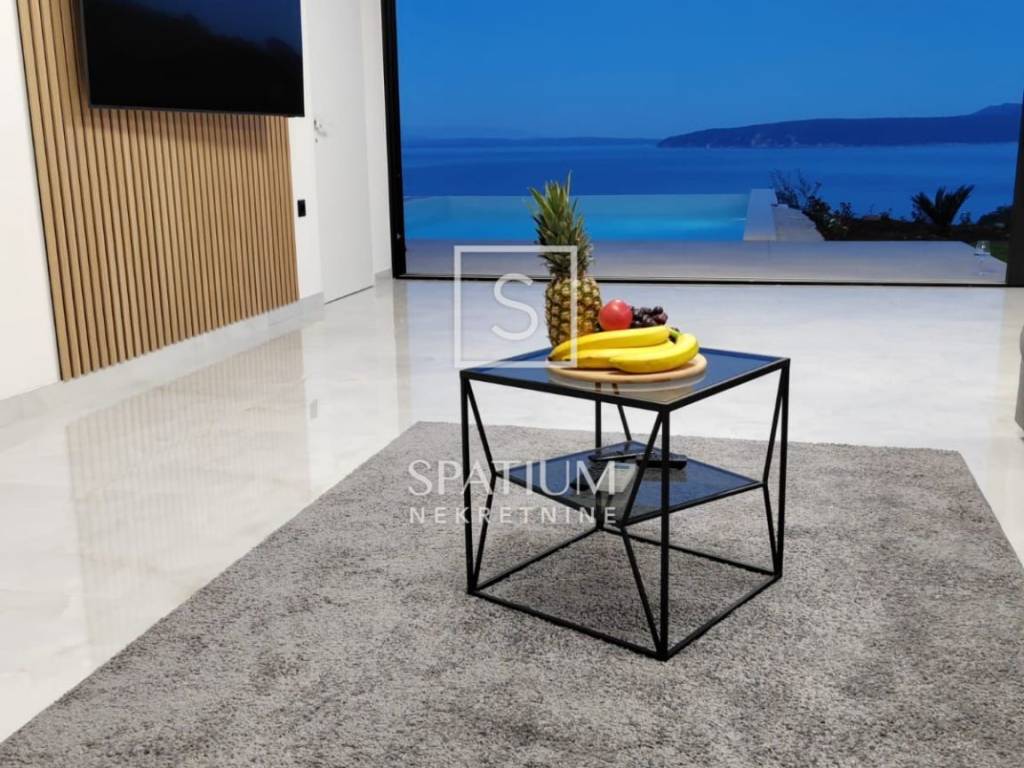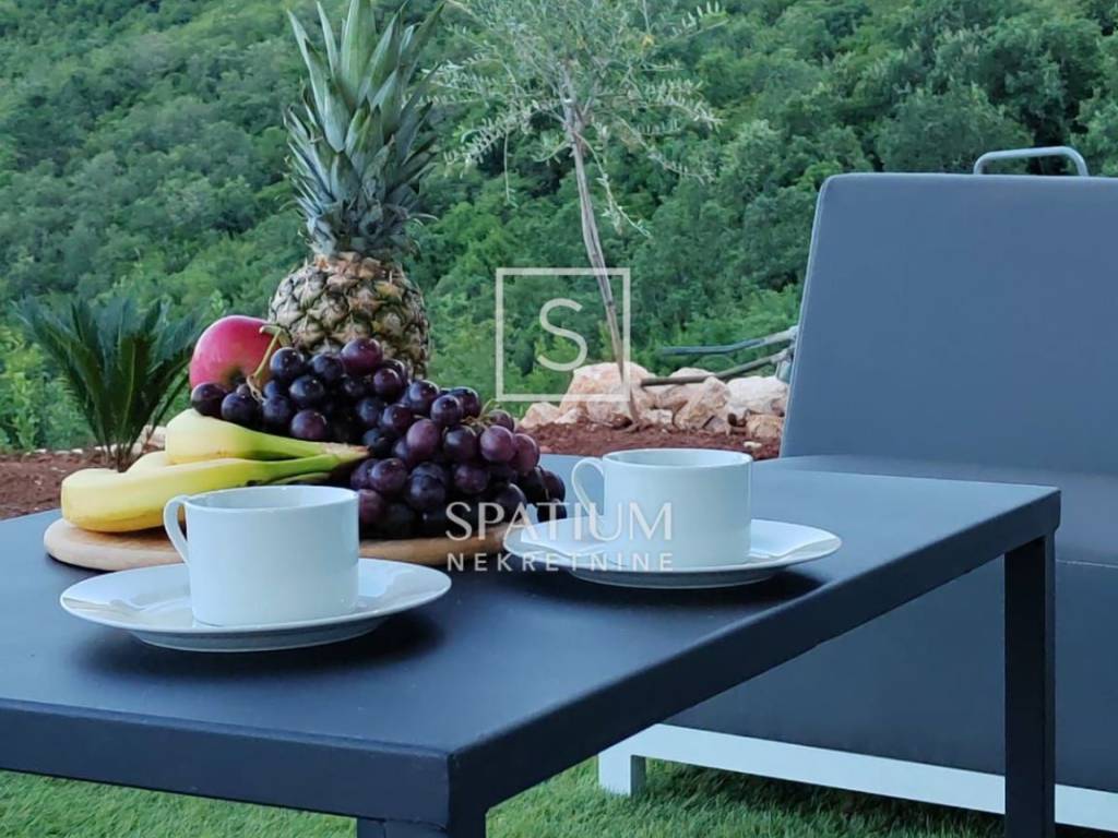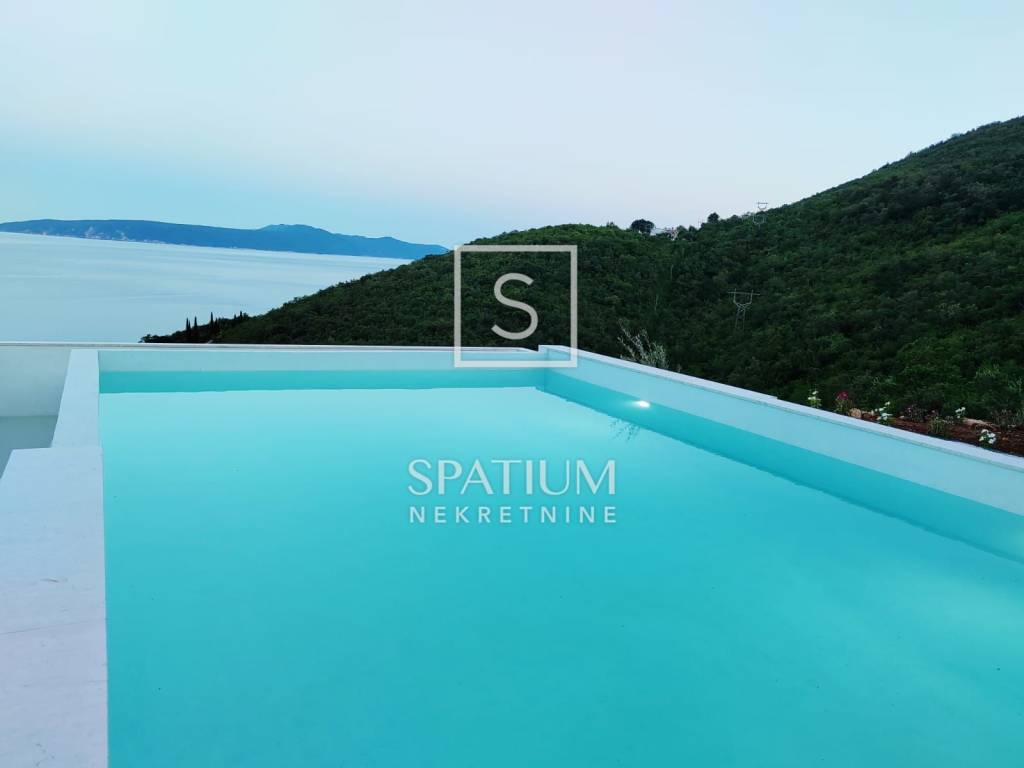 MEDVEJA, we offer a beautiful house with a panoramic view and a swimming pool located just above the beautiful beaches of Medveja, perfectly positioned to enjoy the natural beauty and peace of Kvarner. The total area, 93m2, offers a spacious and bright living room ideal for relaxing and socializing. The dining room, located in the central part of the house, is connected to a modern kitchen that includes hidden details such as a pool table under the dining table. An elegantly decorated bathroom and a practically located technical room further contribute to the functionality of the home, while the bedroom offers a quiet corner for rest with a beautiful view of the sea. The outdoor areas include a 50 m2 swimming pool, perfect for refreshing on hot summer days, and a 30 m2 covered terrace that provides shade throughout the day, ideal for relaxing and enjoying the outdoors. The landscaped and maintained garden with a barbecue area provides additional space for outdoor activities. The southern orientation of the house ensures maximum use of daylight and a spectacular view of the sea from every room. Equipped with heat pumps and air conditioners in every room, the house provides an optimal temperature throughout the year. Top-quality materials and quality appliances guarantee longevity and a high quality of life. Located on a hill above Medveja, the property has an extended duration of sunlight compared to properties located lower, which further increases its attractiveness. This property is sold fully furnished, allowing immediate occupancy at no additional cost. Ideal both for living and for investment, the house provides a perfect combination of luxury, comfort and functionality. Do not miss the opportunity to become the owner of this extraordinary property in Medveja and enjoy all its advantages. Medveja is a place that perfectly connects the two sides of the Lovran region. The settlement that stretches along the slopes of Učka offers relaxation in the middle of nature, far from crowds and stress, in modernly equipped villas and holiday homes with a view of the sea waves. It is a vacation in the style of the Roman patricians who once chose this very area to build their villa rustica. And the valley hides one of the most beautiful beaches of the Opatija Riviera. Each stone pebble, whose white shines in the sun, is a separate masterpiece of nature, shaped by the stream that gurgles down the slopes of Učka and carved by the wind and sea waves. For all other information, contact an agent with confidence. For other information, contact an agent with confidence. Silvio Orešković licensed agent +385 99 2358 666 silvio@spatium.hr Spatium nekretnine +385 51 272 903 info@spatium.hr