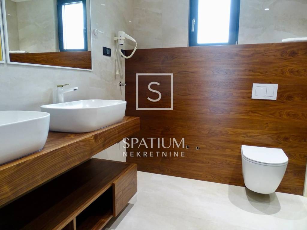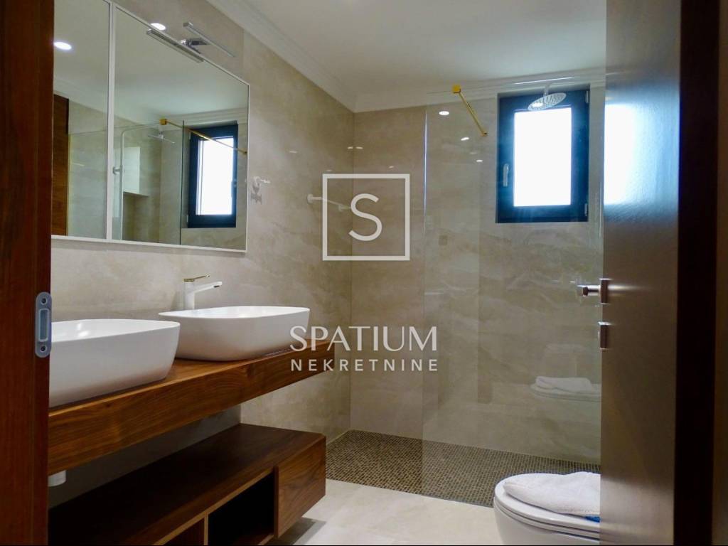 MALINSKA, ISLAND OF KRK, we offer an apartment with a garden located on the ground floor of a new building. The total area of the property is 164.02 m2, or the apartment, which is net 120.39 m2, has a garden of 102 m2, a swimming pool of 15 m2 and a parking space of 12.50 m2. The apartment consists of an entrance hall, a spacious living room with kitchen and dining area, three bedrooms, one of which has its own bathroom, a toilet, a bathroom and a loggia. High-quality Dierre interior joinery, Inotherm entrance doors, alarm and video surveillance, first-class ceramic flooring and "Karag" sanitary ware are part of the building's equipment. Underfloor heating and Mitsubishi floor air conditioning units have been installed. An electric car charger is located in the parking space. The building is a reinforced concrete structure with a self-ventilated facade covered with stone wool. The facade is finished with stone, travertine and therefore, as well as other details - lighting, fences, architectural solutions, the building looks exceptionally beautiful. On the spacious garden, paved with stone, there is a swimming pool, a summer kitchen and preparation for an outdoor shower. The quiet street, the proximity of the center and the sea make this property interesting for living, occasional stay or as a tourist investment. "Malinska is the pearl of the Kvarner Islands" wrote a professor at the University of Vienna, L. Waagen in 1905. Tourism, which is today the main economic activity, began in Malinska at the turn of the 19th and 20th centuries, thanks to the development of railway and steamship transport. The first recorded guests were hunters, Austrian and Hungarian aristocrats and Rijeka patricians. They came to the Malinska area to hunt for woodcocks and other feathered game. Mediterranean culture, as the culture of the Croatian island, is immersed in family, architecture, music and food - its cultivation, processing, preparation and consumption. As the local population was engaged in fishing, growing olives, vines, figs and sheep farming, the tradition was nurtured and proudly lives on today. The interesting and diverse surroundings of Malinska reveal many natural attractions and old historical sites that date back to ancient times. For further information, please contact us with confidence. Azalea Kegalj licensed agent +385 95 905 5464 azalea@spatium.hr Spatium nekretnine +385 51 272 903 info@spatium.hr