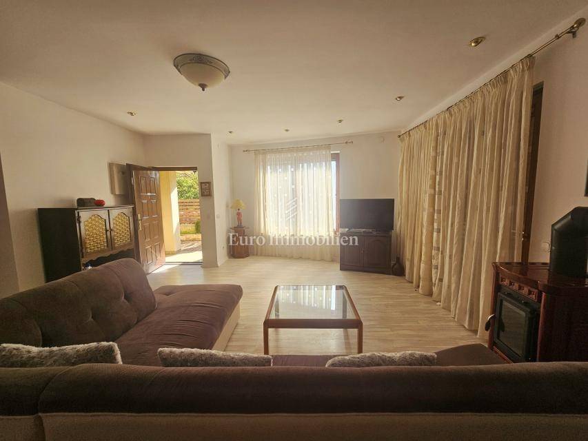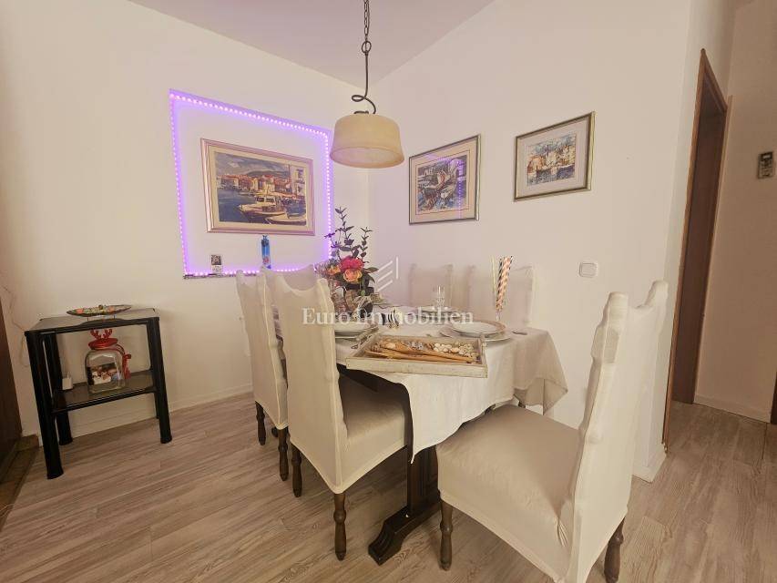 Ground floor apartment of 71.40 m2 consisting of two bedrooms, living room with kitchen and dining area, bathroom and terrace. The apartment has a beautifully landscaped garden, one parking space and a separate storage room. The apartment is furnished and equipped, air-conditioned, has a wood-burning stove. A good choice for living all year round or as a holiday apartment in a quiet location. The apartment is a few minutes drive from the center of Malinska and the beach.