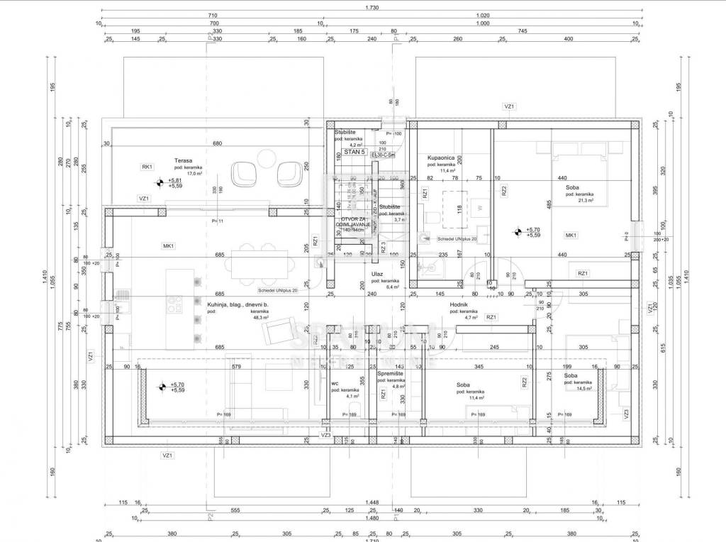 POREČ – We offer a spacious and modern apartment with a total area of 140 m² occupying the entire floor on the second level of a small residential building with five units. The completion of construction is planned for the end of 2025. The window frames have already been installed, with finishing works and floor coverings remaining.