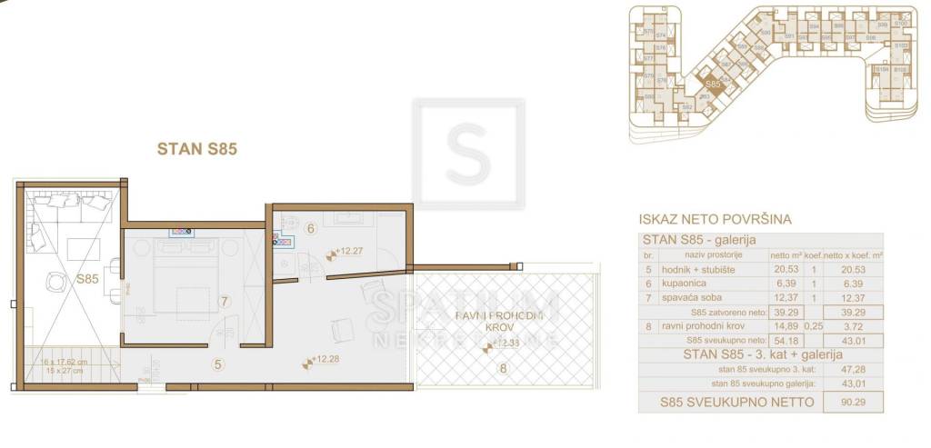 Apartment S85, with a total surface area of 90.29 m², is a duplex unit with a gallery and offers stunning views of the sea and the town of Poreč.