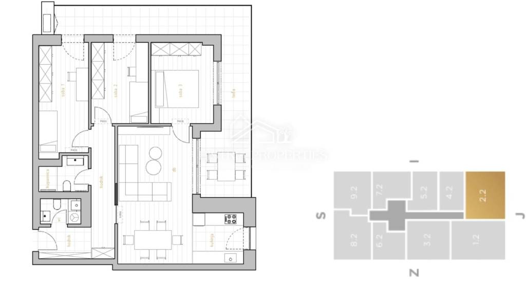 The apartments meet the highest construction criteria, and their design follows a modern and luxurious interior. Each apartment has a spacious loggia so that outdoor living is possible during most of the year.