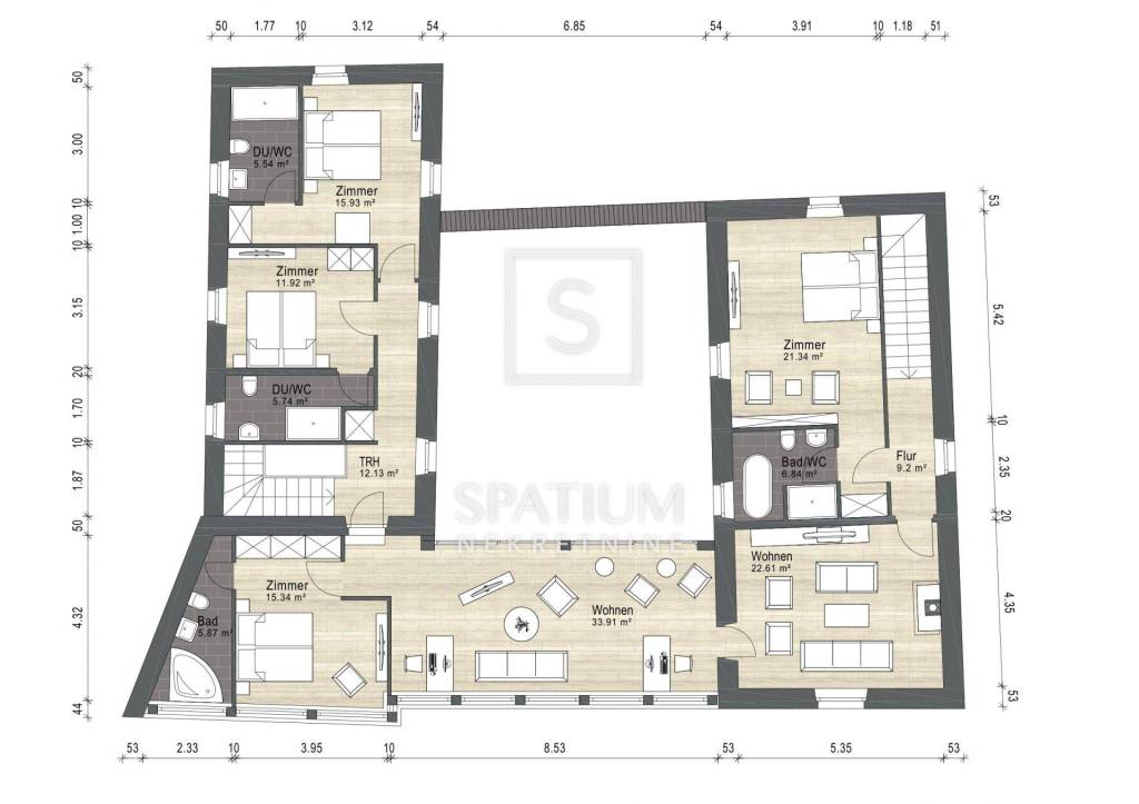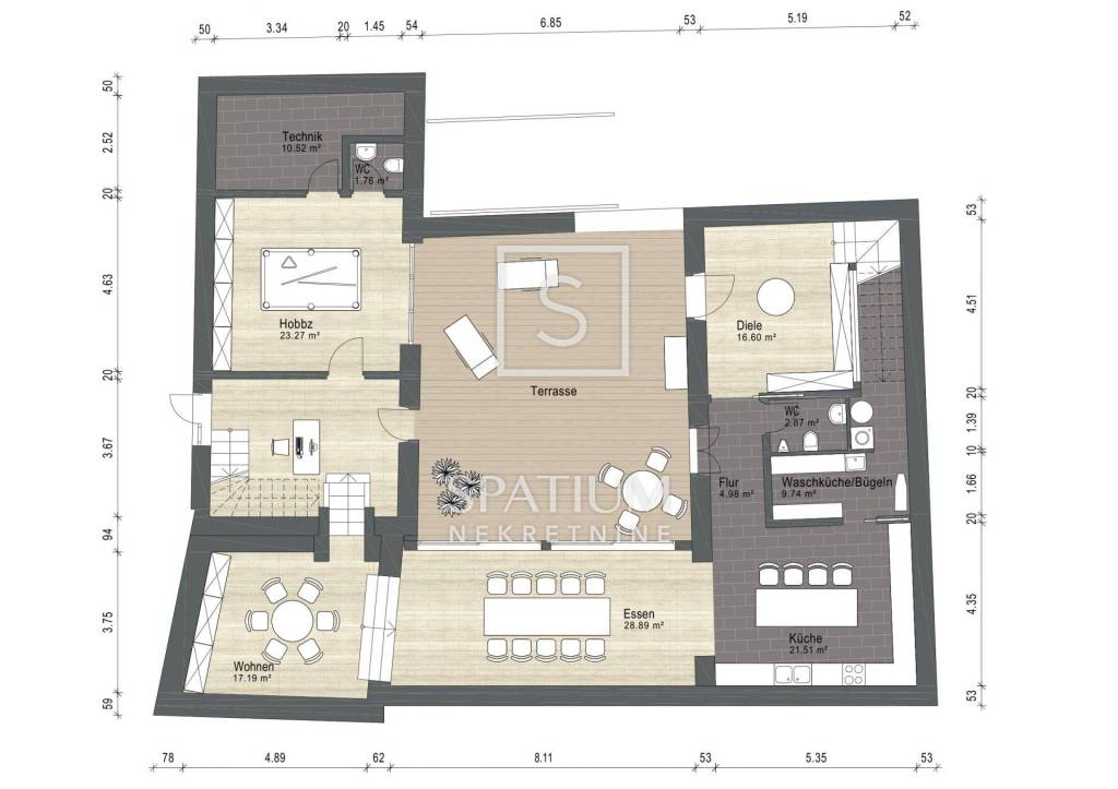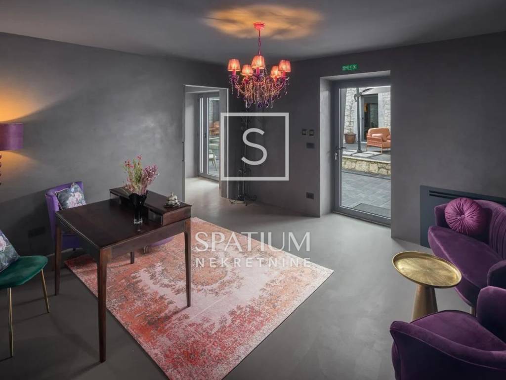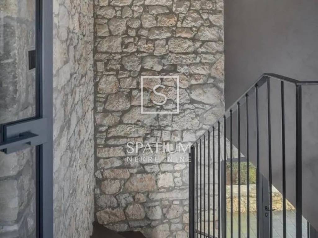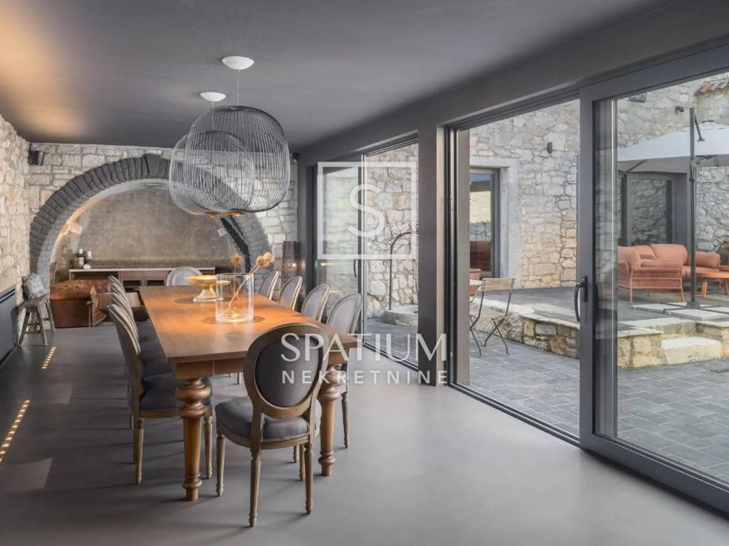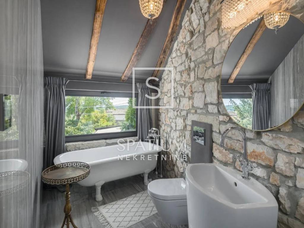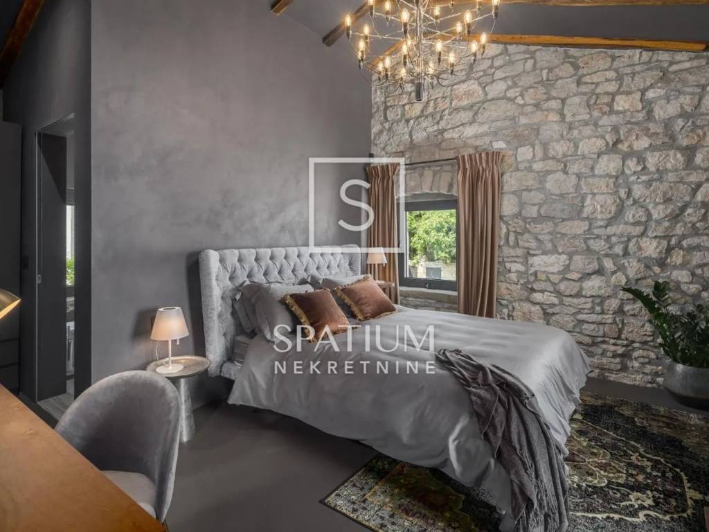 The villa exudes luxury and style – a combination of authentic stone walls, wooden beam ceilings, modern and rustic furniture, and top-quality fittings create a unique atmosphere and complete comfort.
