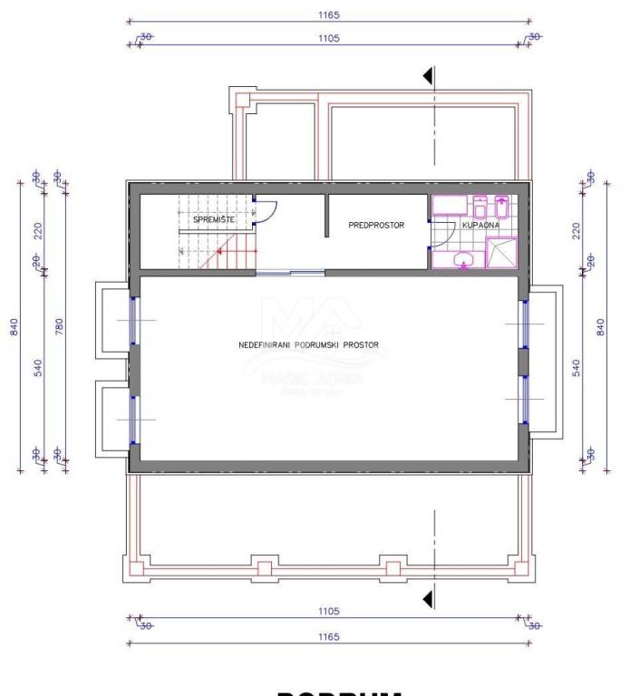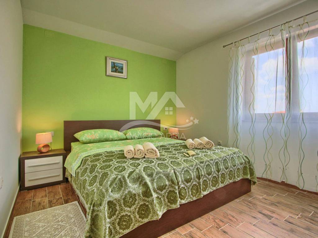 3. Bedroom with private entrance and bathroom (bath, bidet, toilet, sink), equipped with private air conditioning, SAT / TV, cca 25m2 in the distance.