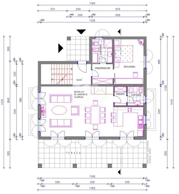 2. Bedroom with private entrance and bathroom (shower, bidet, toilet, sink), equipped with private air conditioning, SAT / TV, cca 26m2