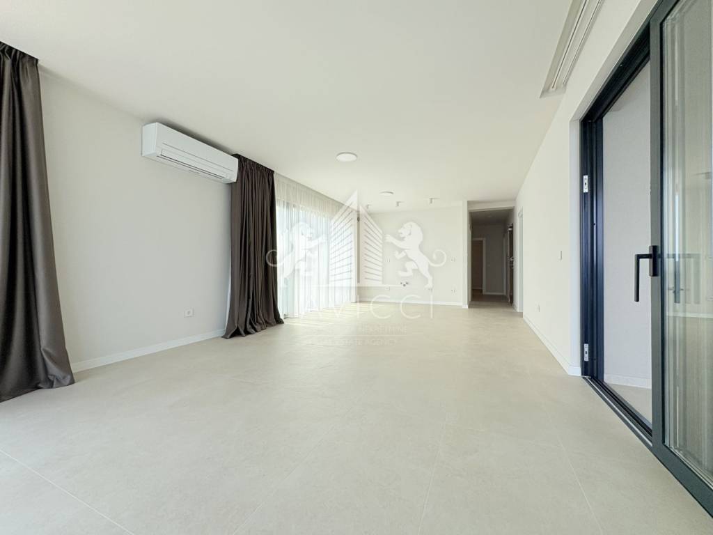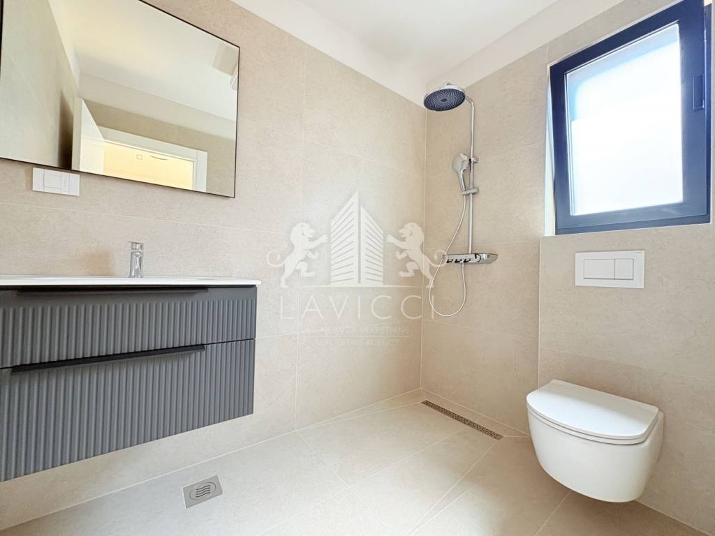 It consists of an entrance area / hallway, bathroom, three bedrooms, two of which have their own en-suite bathroom, and a spacious living room with kitchen and dining room with access to a covered spacious loggia of 21.75 m2, which is an ideal place for private gatherings or relaxation in a spectacular view of the sea in the morning or evening. We especially emphasize the sliding-lifting walls installed throughout the living area that provide a unique view of the sea. The apartment has a shared roof terrace. The roof terrace has water, electricity and drainage installations, and it is possible to further enrich the space with other amenities such as a jacuzzi, barbecue, pergola and the like.