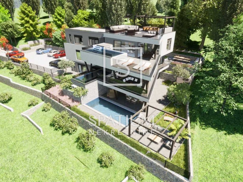 RIJEKA, we are offering a luxurious spacious apartment in a new building with an area of 95.71 m2 of well-designed interior space. Located in a quiet location surrounded by a green belt and only a 2km drive from the city center as well as from all other important facilities. It consists of a kitchen, dining room and living room, pantry, bathroom and three spacious rooms, including a master bedroom with its own bathroom. What makes this apartment particularly attractive is its magnificent garden, which covers an exceptional 274.27 m2, of which 53.04 m2 is a covered terrace. This spacious yard offers a place to relax, entertain or create your own garden paradise. In addition to the heated pool of 24.00 m2, the apartment also has 3 parking spaces and a charger for electric cars. With a thermal facade and underfloor heating from the manufacturer Daikin, a warm home is guaranteed. A heat pump with a hot water tank very efficiently produces enough hot water for consumption. Cooling is A+++ thanks to the most modern technology from the supplier Daikin. 4 internal units are connected to 1 external unit of 8 kw. Heating and cooling is automatically regulated in each room separately. Protection from external influences and heat losses with quality carpentry from renowned suppliers. It should be noted that there is a possibility of individual design and interior decoration of future tenants. Pulac is located in an extremely attractive location in the northwestern part of Rijeka. The hills on which the local board is located have always been strategic places for the rulers of the city on Rječina. They were also inhabited by the Illyrians who built a fortress and their settlements here, since ancient times this area was of exceptional importance for the entire region. Brašćine - Pulac is a local council of the city of Rijeka. For all other information, please contact Robert Žauhar +385 92 177 5404 robert@spatium.hr Spatium nekretnine +385 51 272 903 info@spatium.hr