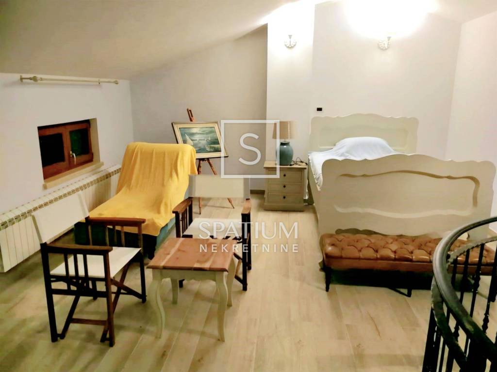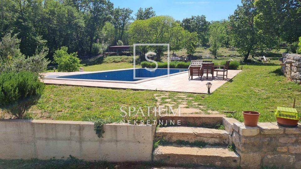 ISTRIA, SANTALEZI, we are offering a stone house in an authentic Istrian style, living area of 265m2, which is located on a spacious plot of 4650m2, providing privacy and peace. The interior of the house consists of a living room with a large fireplace, a modern kitchen in a traditional style with all the necessary devices and appliances, a dining room, a storage room and a bathroom. Internal stairs connect the first floor and the high attic, where three spacious bedrooms are located. Each room has its own bathroom and access to the terrace. On the spacious garden there is a swimming pool with a sunbathing area and another separate object that has been arranged into a studio apartment, ideal for guests or tourist rental. Located in a quiet location, the house is only a few kilometers away from the necessary facilities such as shops, restaurants and cafes, and is a perfect place for a vacation or as an investment in tourism. In the eastern part of central Istria, on a high plateau above the Raša river valley and in the hinterland of the town of Labin, there is a special municipality of Sveta Nedelja. The unique location, the proximity to the sea, but also to lush forests, signifies a holistic combination of green and blue, which represents great potential for the development and quality of life of the residents of this area, as well as numerous visitors. For other information, please contact us with confidence. Nives Švast mediation assistant +385 95 859 0550 nives@spatium.hr Spatium nekretnine +385 51 272 903 info@spatium.hr