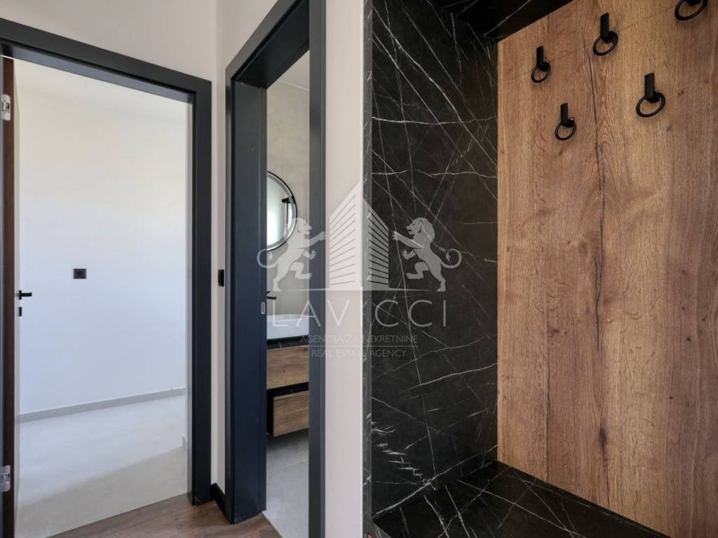 Special attention is paid to the quality of construction and energy efficiency. The house has an A+ energy class, underfloor heating in all rooms, a 12 cm thick graphite facade, external ALU carpentry with three-layer glass with protection from the view, sliding walls and mosquito nets, anti-burglary entrance doors and decorative LED lighting. Two parking spaces are provided in front of the building, while an additional space can be provided as needed.