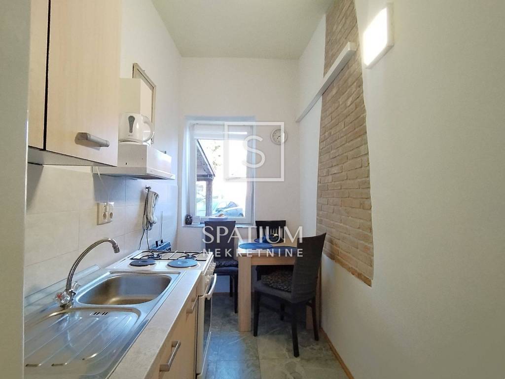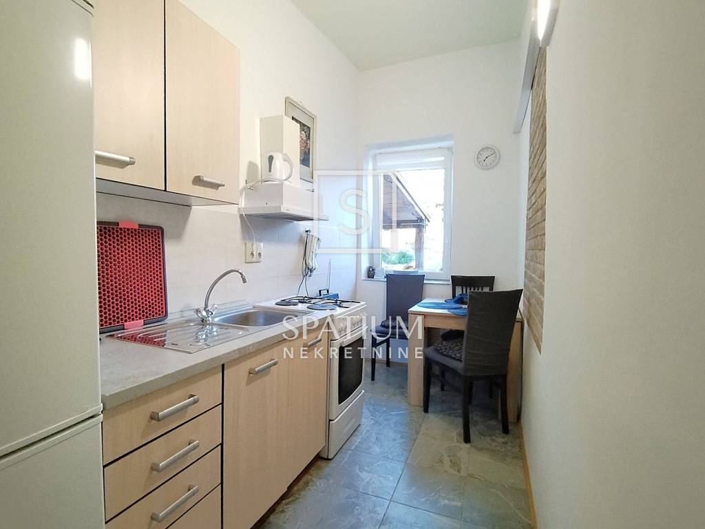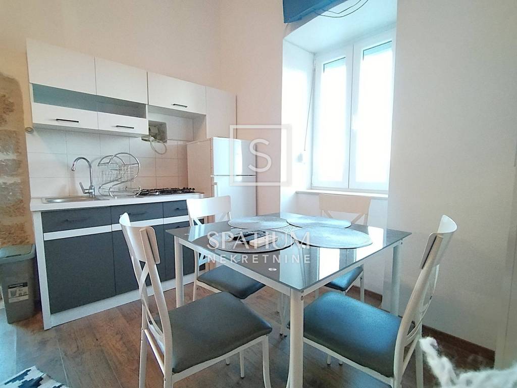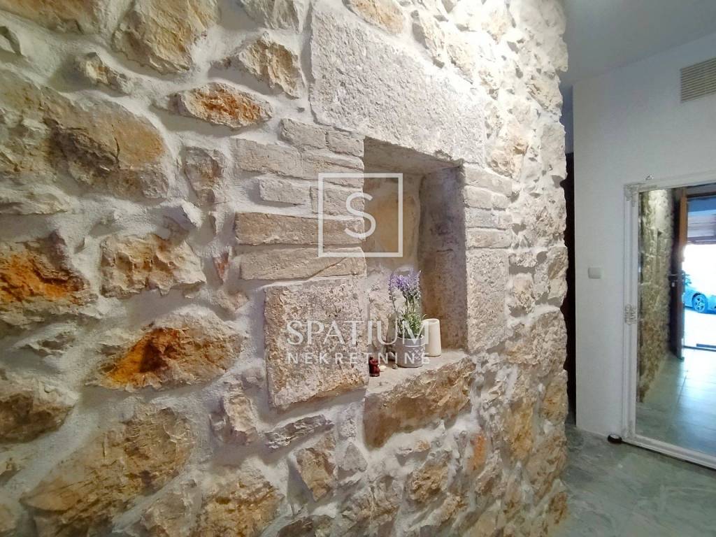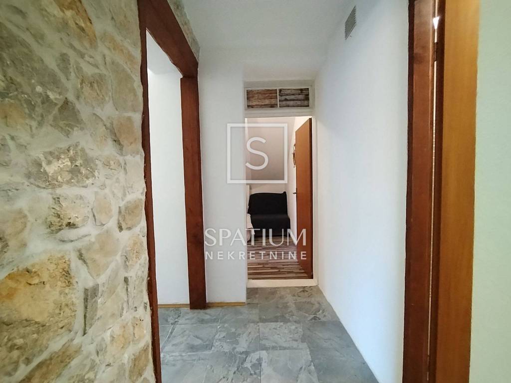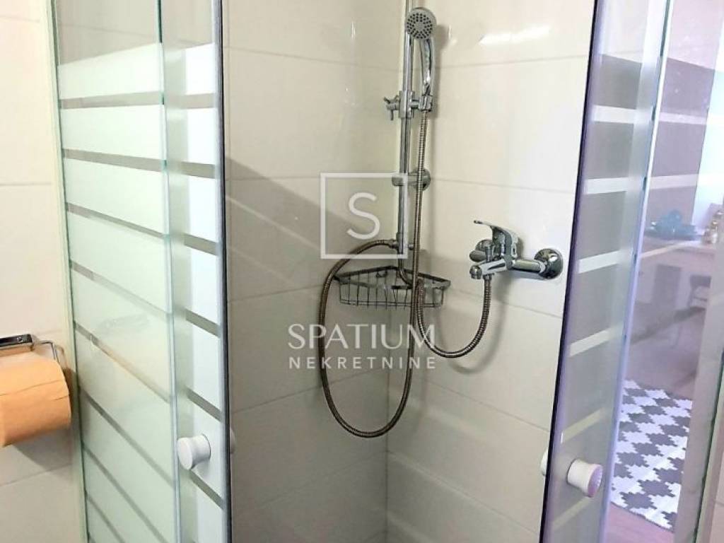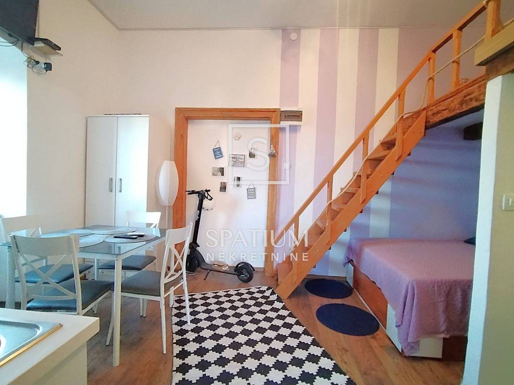 We have received two apartments in the house, which are divided into two separate units on the ground floor. The first apartment of 38 m2 contains a hallway, kitchen, hall with bedroom and bathroom, and a covered terrace with a grill. The second apartment is a studio of 20 m2 which contains a kitchen with a dining area, a bed and a small gallery with another bed and a bathroom. The apartment also has a covered terrace and a small grill. On the fenced plot of 80 m2 there are parking spaces for three cars, and in the yard there is a wooden gazebo that serves as a storage room. This is an ideal property for investing in tourism, as well as for long-term living. The property is 800 m from the sea and all important amenities.