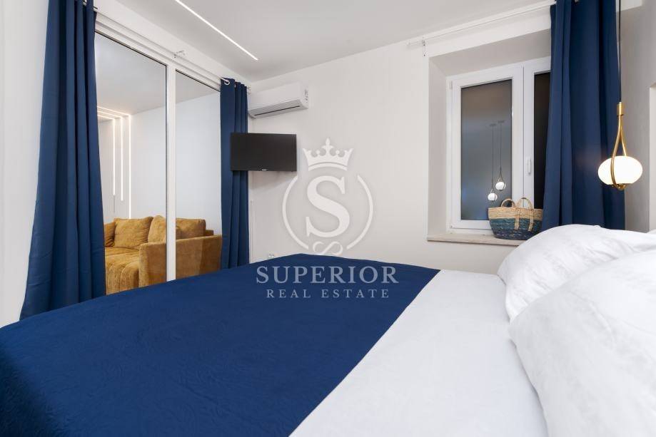 ✦ Features: Location – Rovinj old town 30 m from the sea and Monte beach Fully renovated apartment South and west orientation Equipped and furnished interior Designer furniture and excellent equipment Ideal for investment and tourist rental