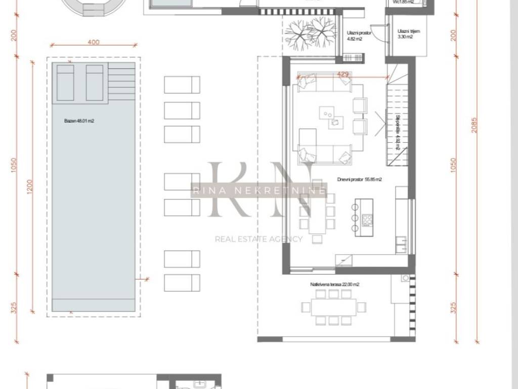 Discover this beautiful villa that is being built only 6 km from the center of Poreč, which will soon be finished and modern furniture has been ordered for it (which will be paid extra), as in the 3d plan. Located in a quiet environment, surrounded by private houses and forest, this villa offers a perfect balance between privacy and proximity to all commercial amenities. An ideal choice for living or a profitable investment!