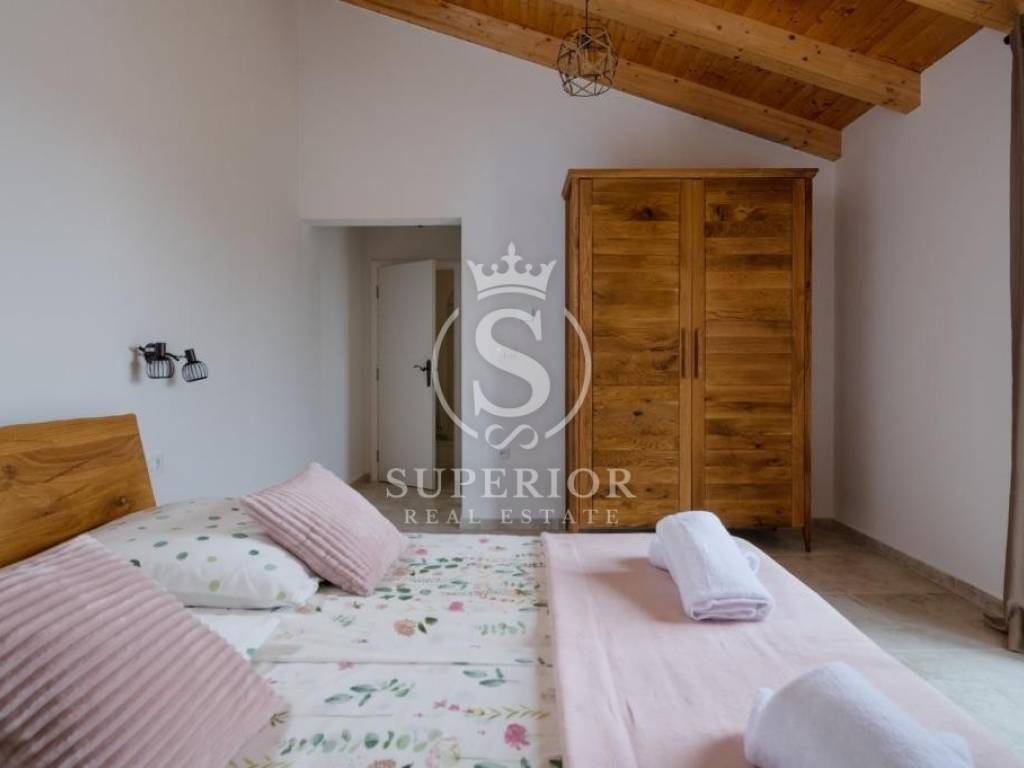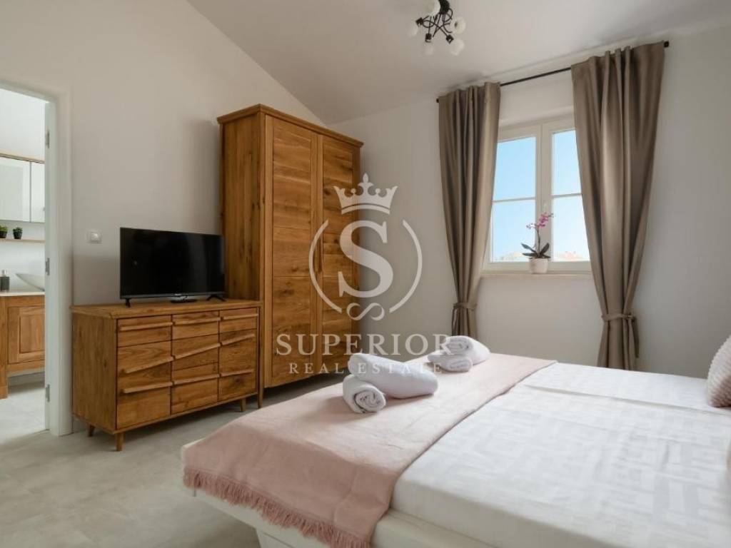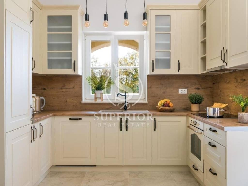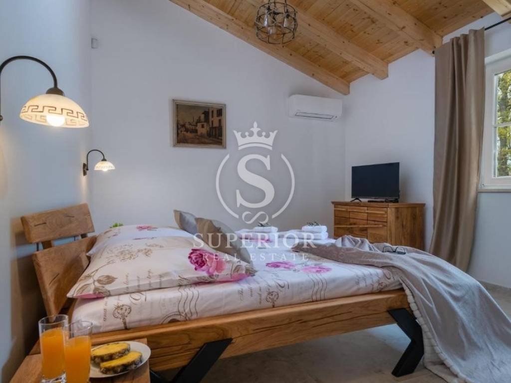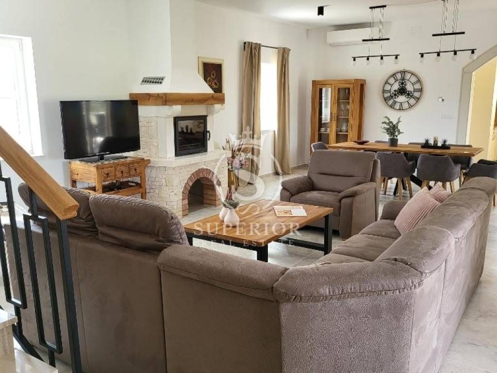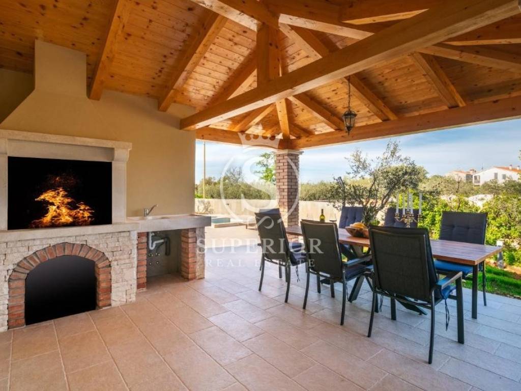 In a peaceful location, just 20 km from Pula and 2 km from the sea, a newly built luxury villa is for sale. It is situated on the edge of a small tourist village, with a newly asphalted access road and surrounded by olive groves. There are 11 planted olive trees on the property, creating a Mediterranean atmosphere and complete privacy.