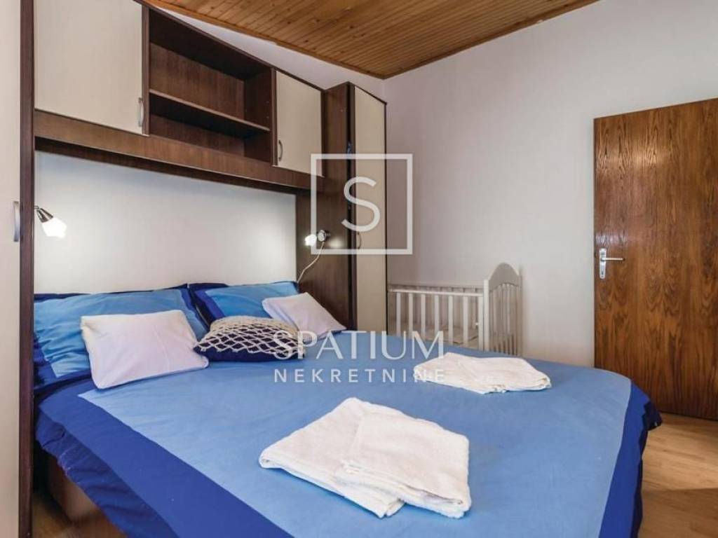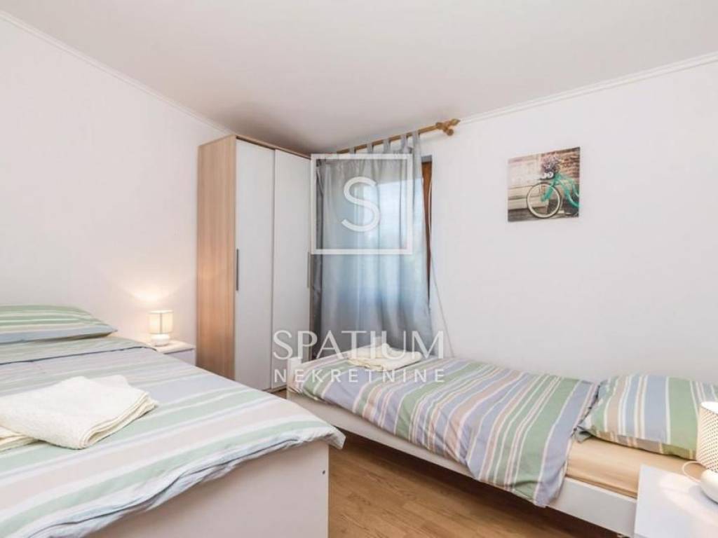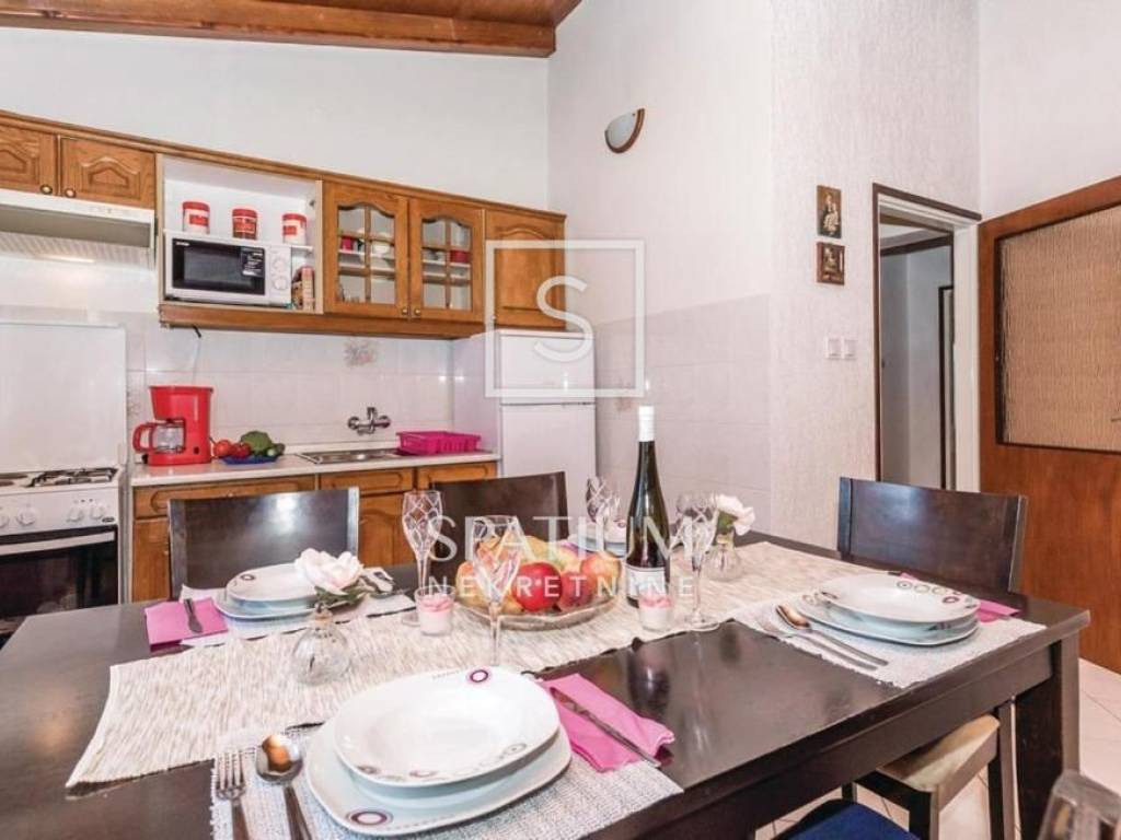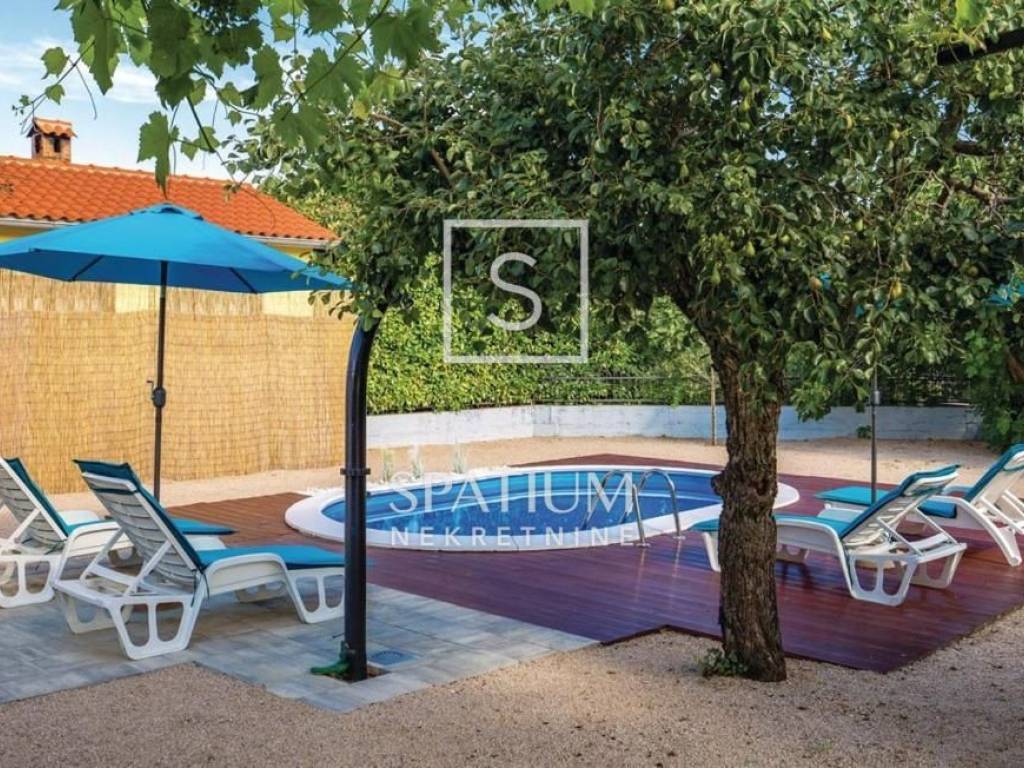 KRK, we have received a single-storey house of 62 m2, with a swimming pool and a covered terrace of 20 m2, located on a spacious plot of 364 m2. The property consists of two bedrooms, a bathroom, a living room with a kitchen and a dining room. There is parking for two cars on the plot. The property is located in the vicinity of Dobrinje in a quiet location 6000 meters from the beach and only 200 m from the center. This is an ideal opportunity for family enjoyment as well as for investment in the tourism industry.