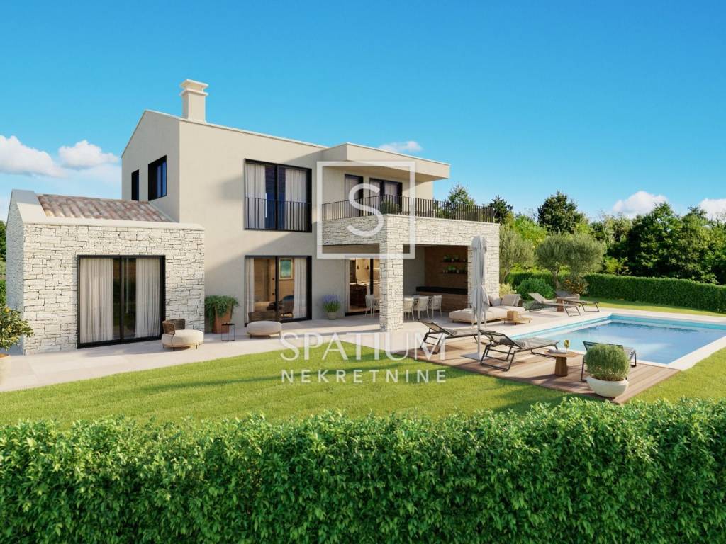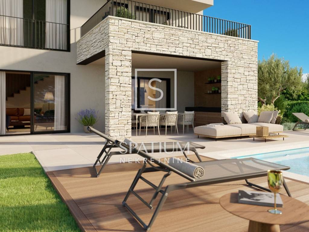 TINJAN – EXCLUSIVE IN OUR OFFER! For sale: an exclusive low-energy new build with a total living area of 174 m², set on a spacious plot of 851 m², in a quiet residential area near Tinjan. Surrounded by family homes and luxury holiday villas, this property offers the perfect blend of privacy, tranquillity, and modern living.