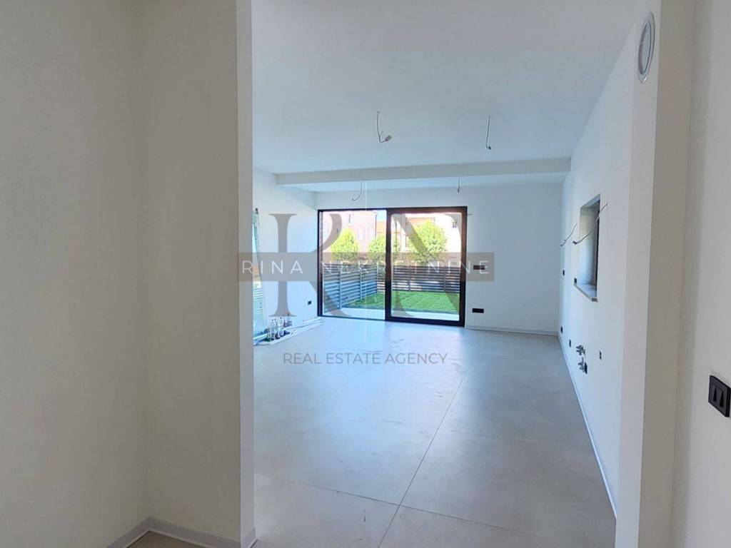 This spacious housing unit is located on the left side of the building and features a private entrance, paved terrace, and landscaped garden. It offers the advantages of a small building with the privacy and comfort of a family house.
