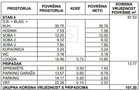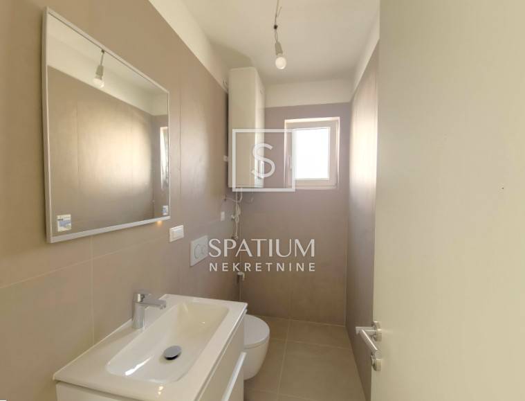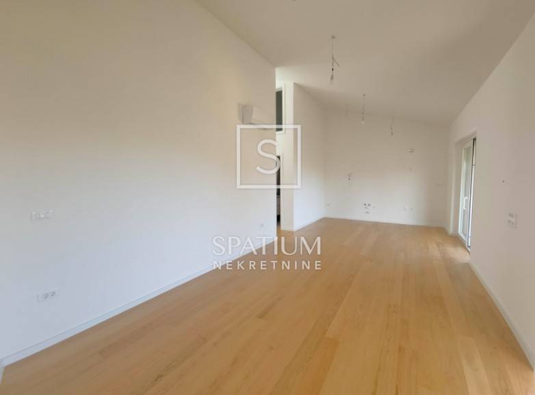 MALI LOŠINJ, CENTER, we offer an apartment with a garden and a courtyard in a new building. It consists of a living room with a kitchen and a dining room that opens onto a loggia, a bedroom, a bathroom and a hallway, and it has an outdoor parking space and a storage room of 6.30 m2. The apartment with a loggia has a total usable area of 47.51 m2, a courtyard of 22.66 m2, a garden of 15.68 m2 and a parking space of 13.64 m2.