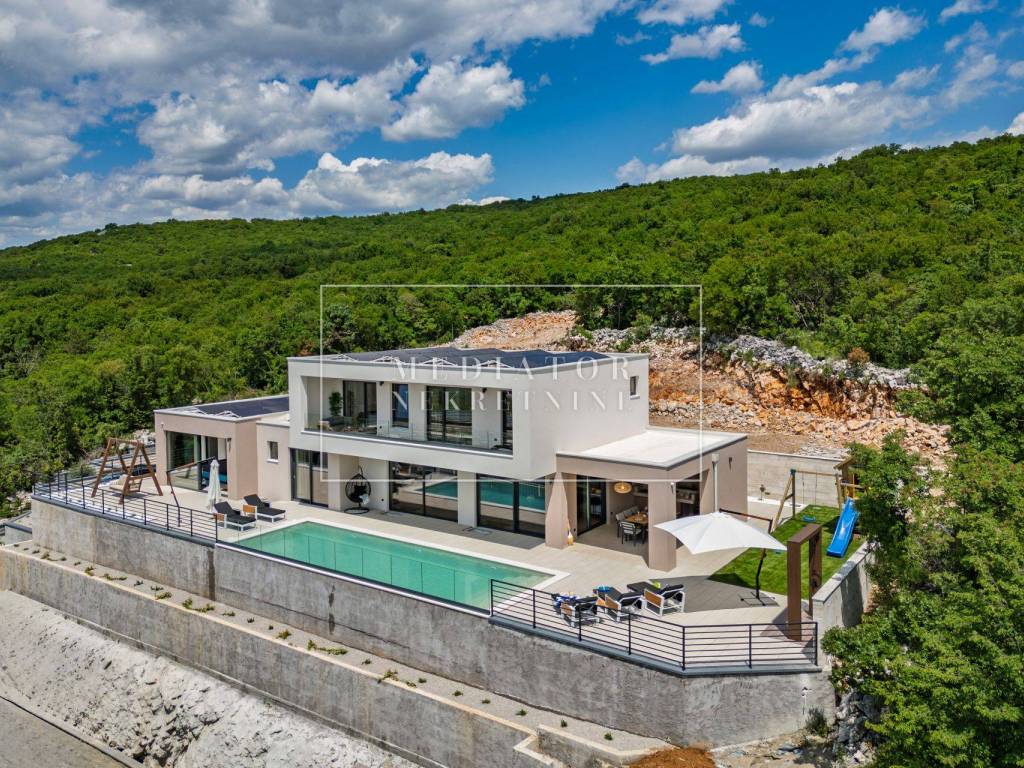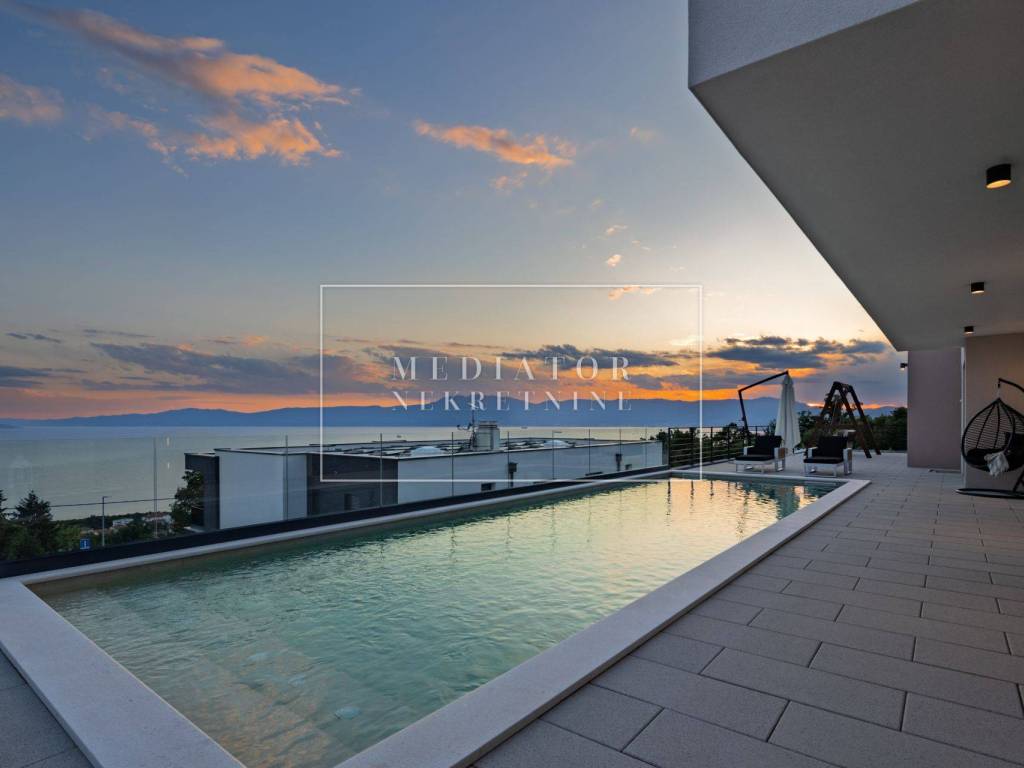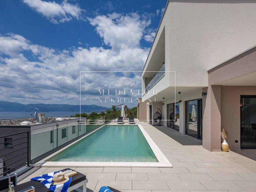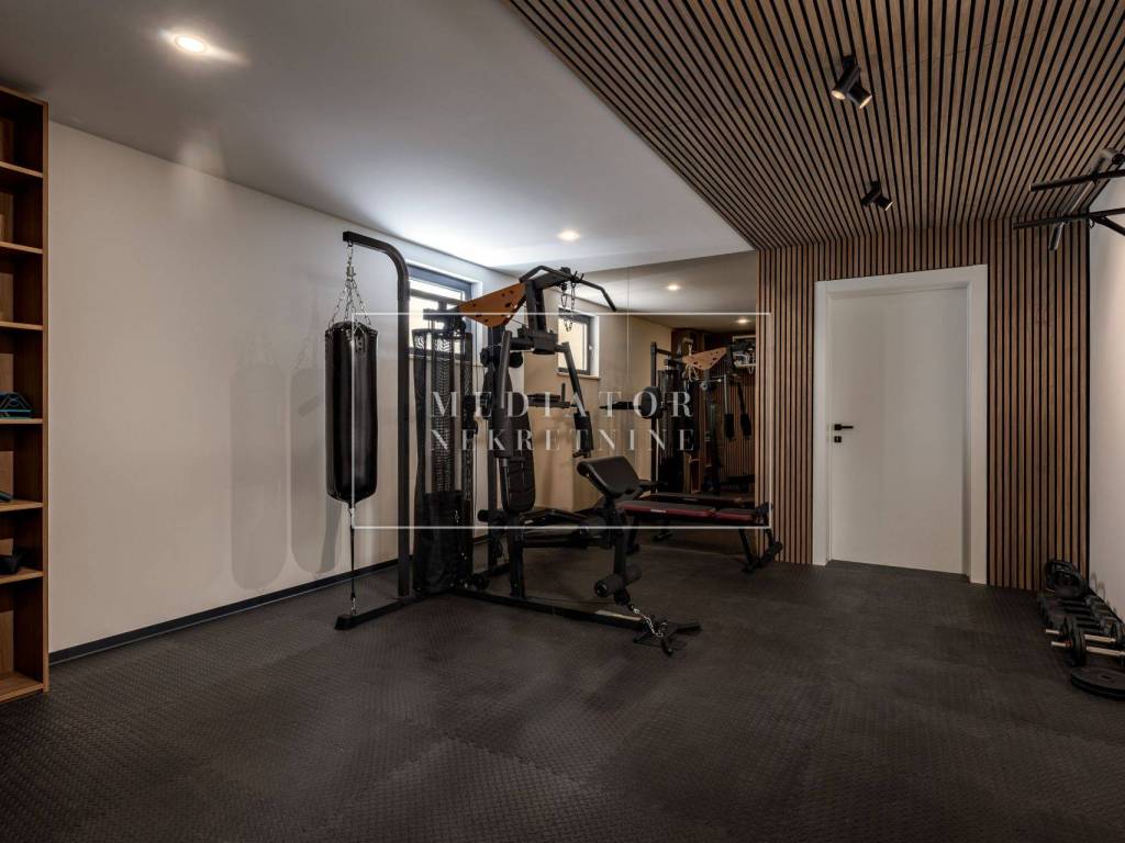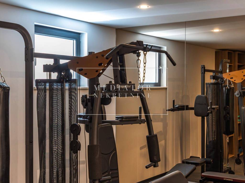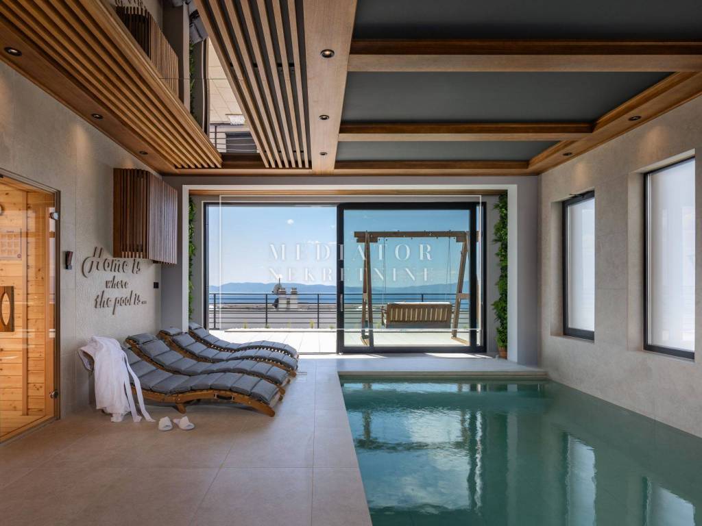 Exclusively offered by Mediator Real Estate is a luxurious detached villa in Kostrena, designed for comfortable year-round living. Situated in a peaceful and attractive location, the villa spans three levels—basement, ground floor, and first floor—and stands out with its exceptional amenities, including indoor and outdoor pools, a sauna, gym, and numerous areas for relaxation and entertainment.