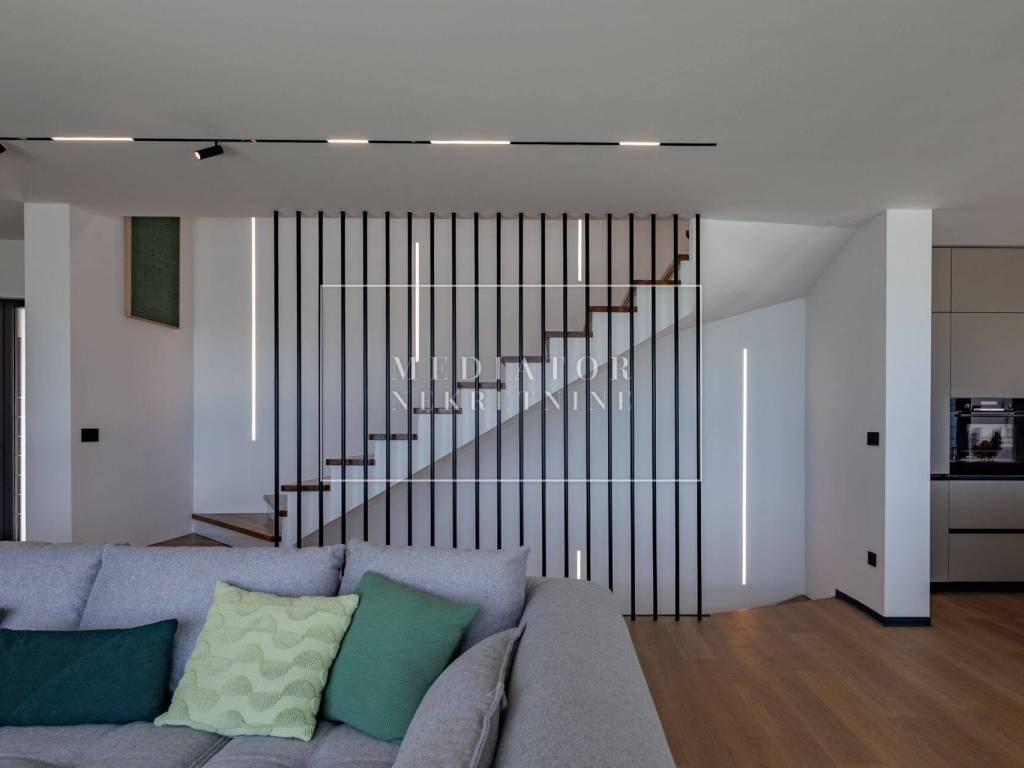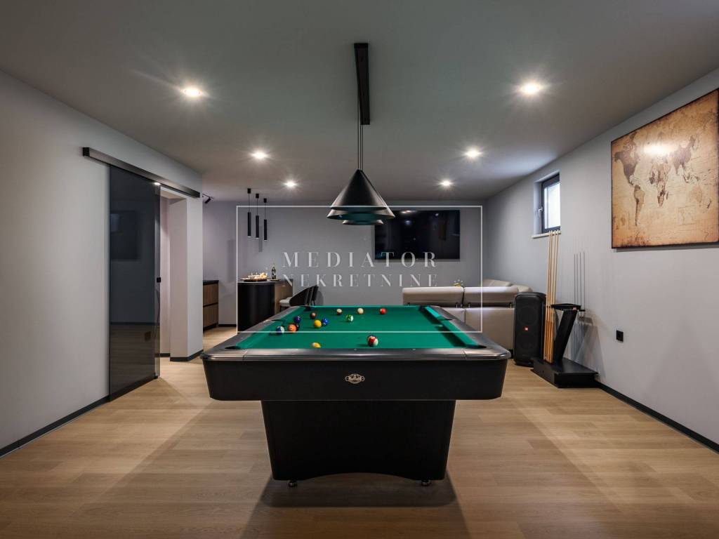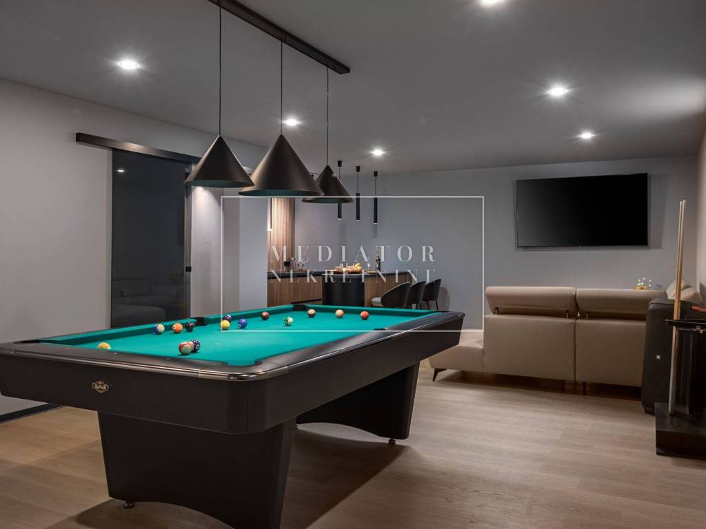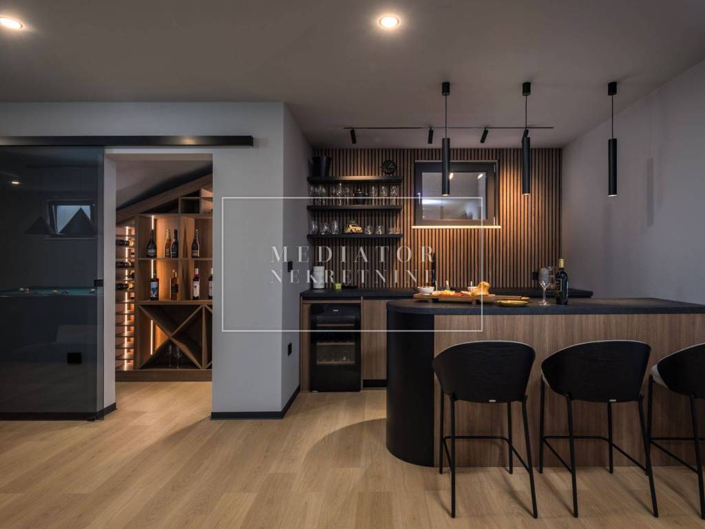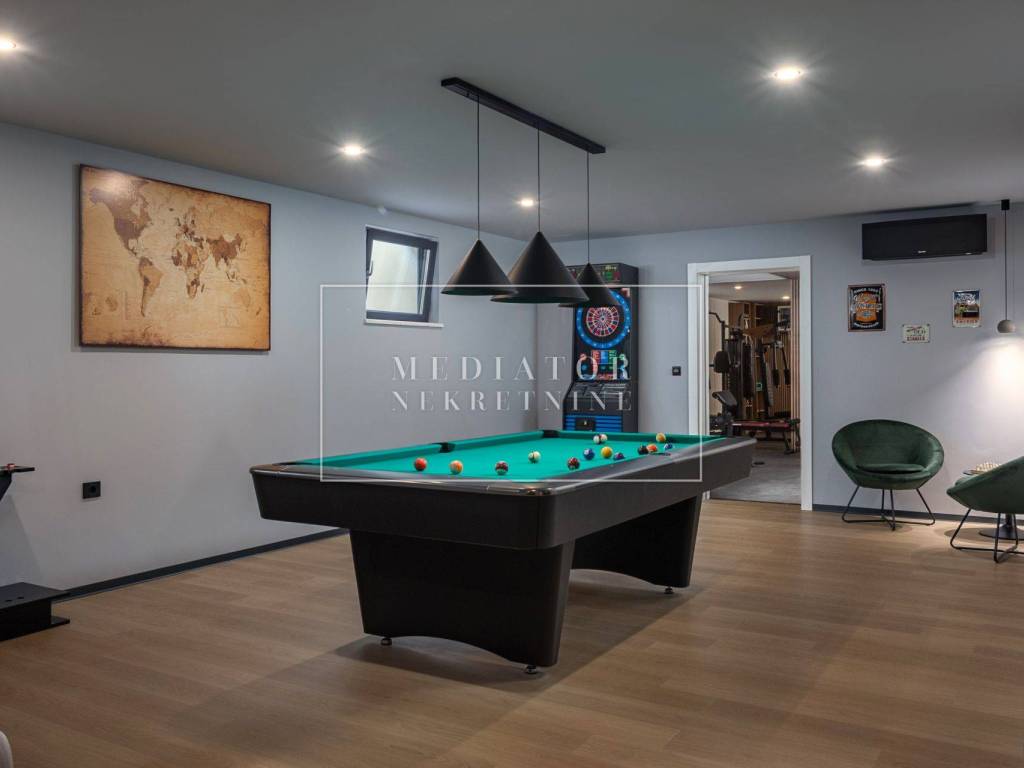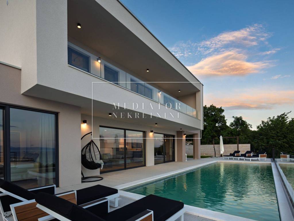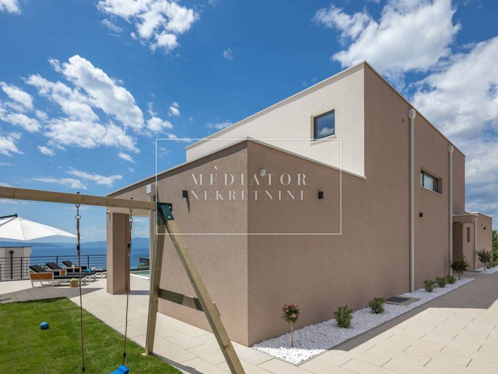Exclusively offered by Mediator Real Estate is a luxurious detached villa in Kostrena, designed for comfortable year-round living. Situated in a peaceful and attractive location, the villa spans three levels—basement, ground floor, and first floor—and stands out with its exceptional amenities, including indoor and outdoor pools, a sauna, gym, and numerous areas for relaxation and entertainment.