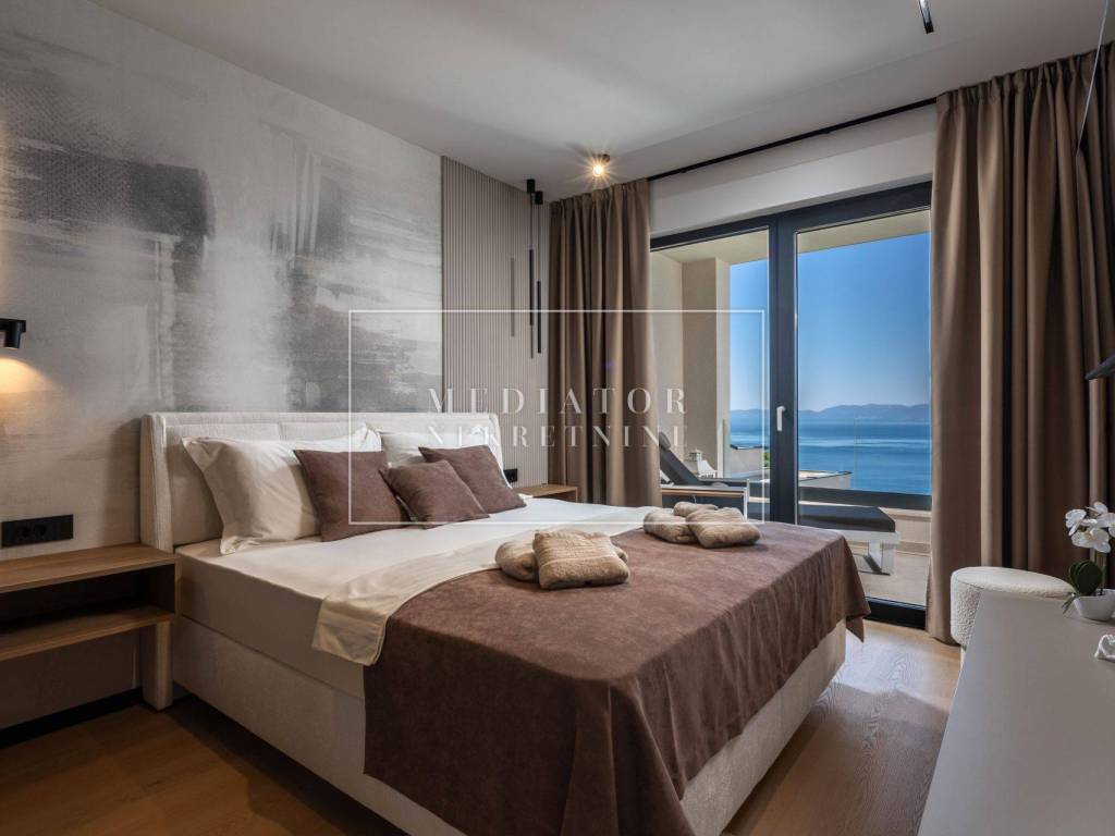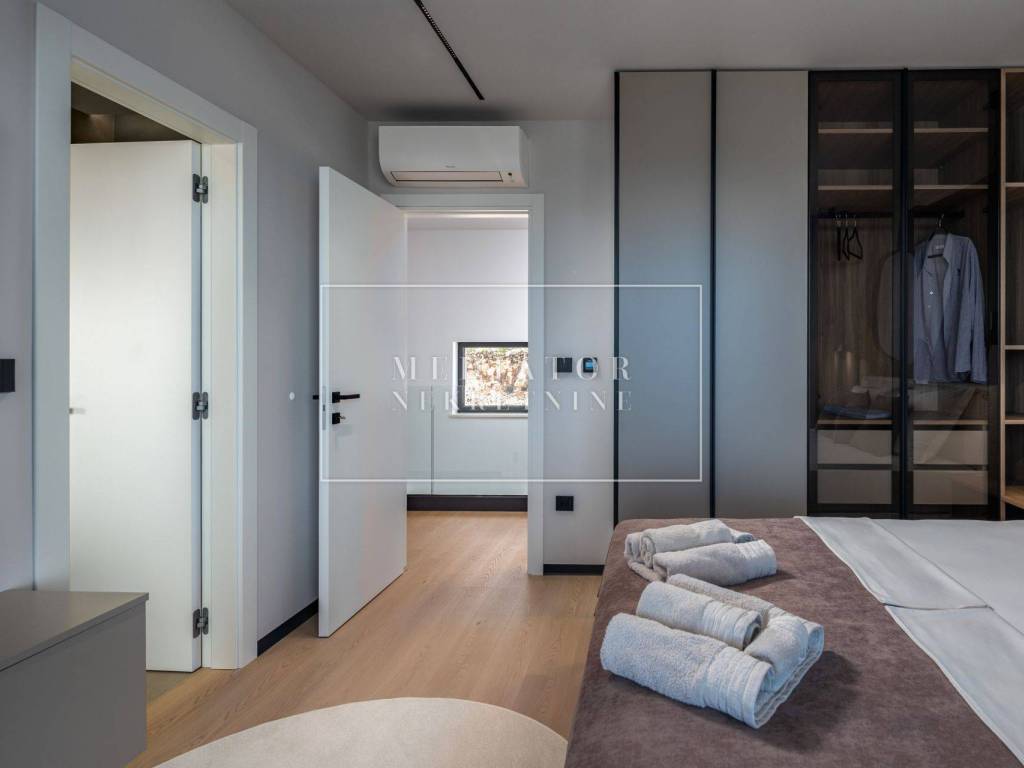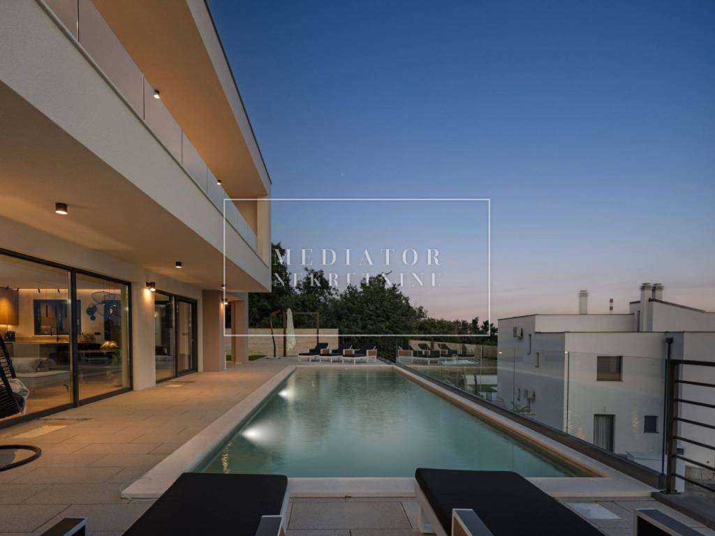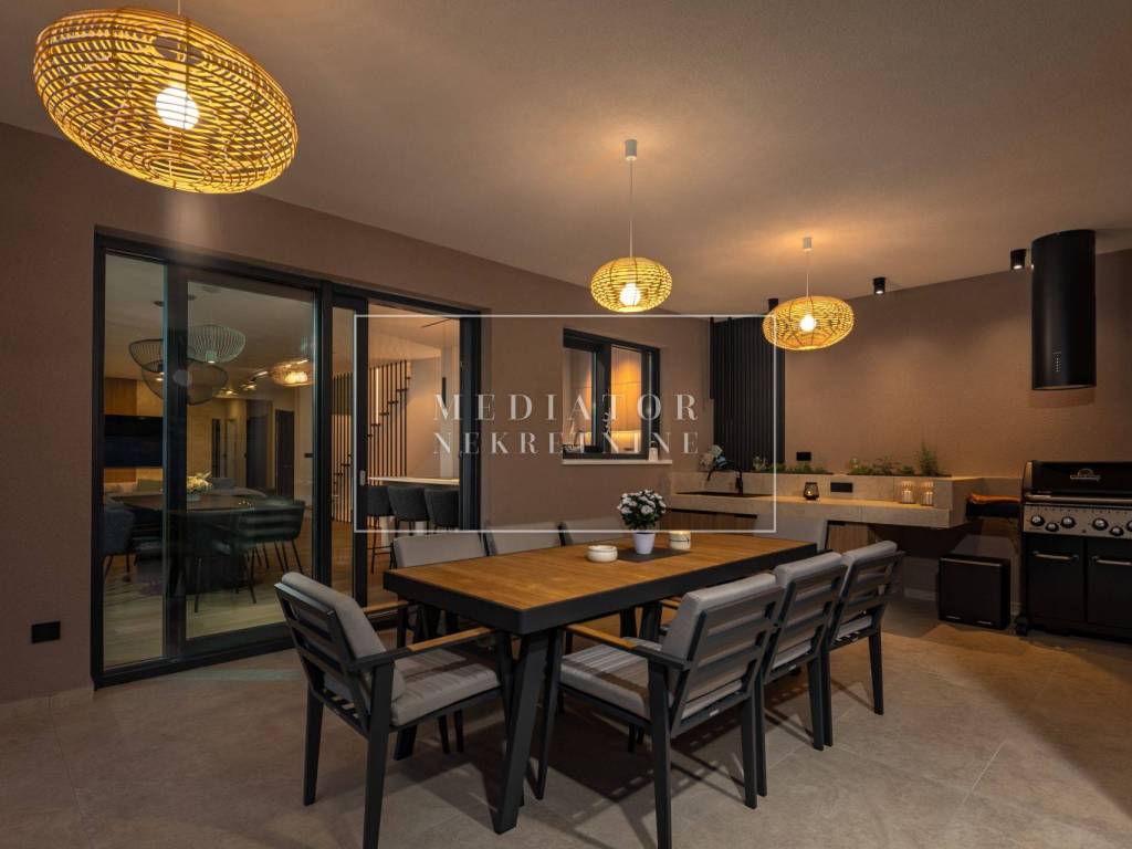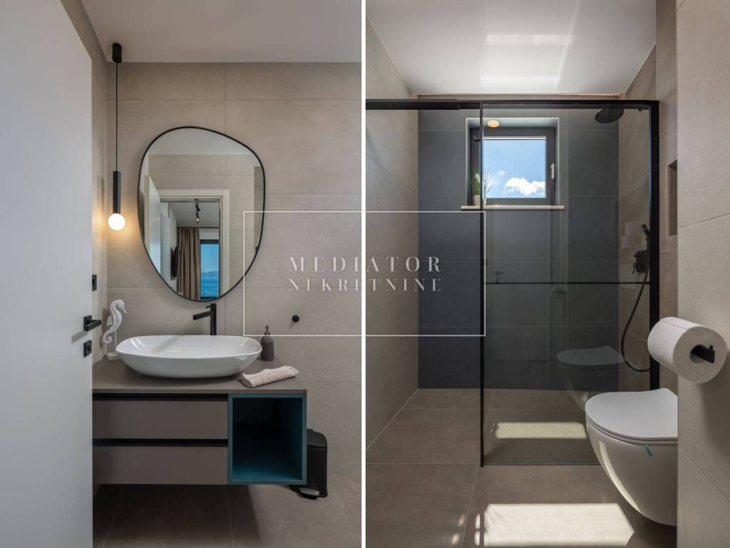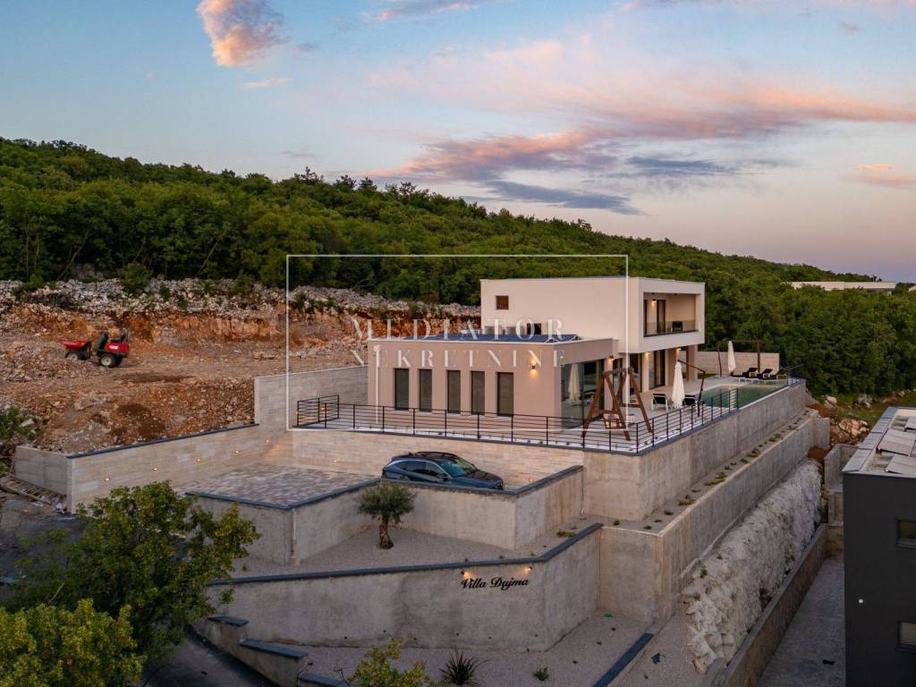 Exclusively offered by Mediator Real Estate is a luxurious detached villa in Kostrena, designed for comfortable year-round living. Situated in a peaceful and attractive location, the villa spans three levels—basement, ground floor, and first floor—and stands out with its exceptional amenities, including indoor and outdoor pools, a sauna, gym, and numerous areas for relaxation and entertainment.