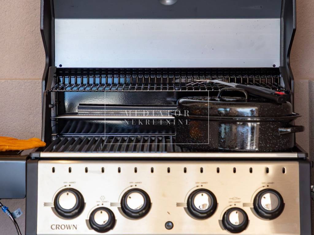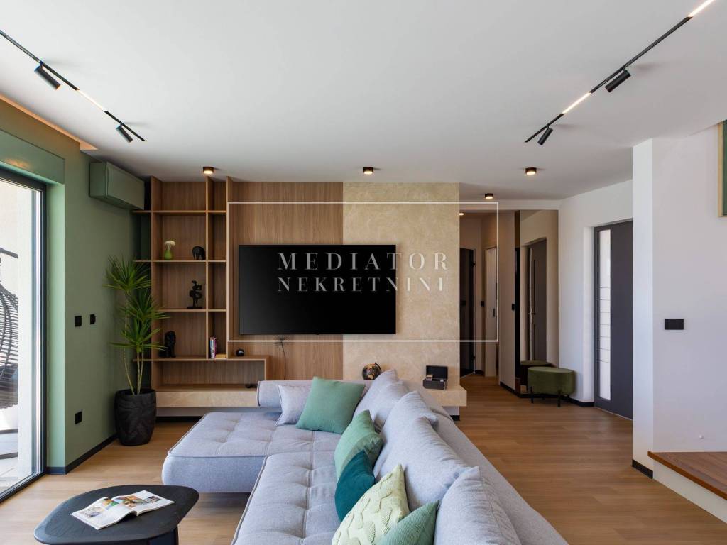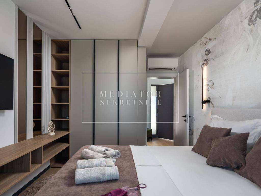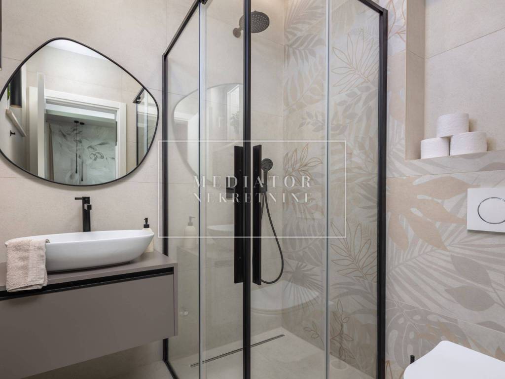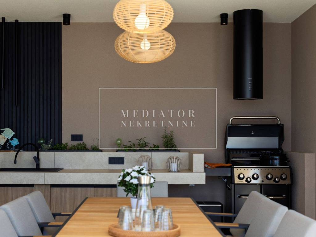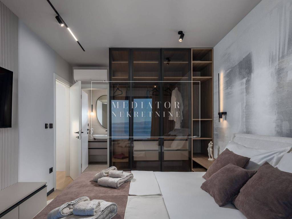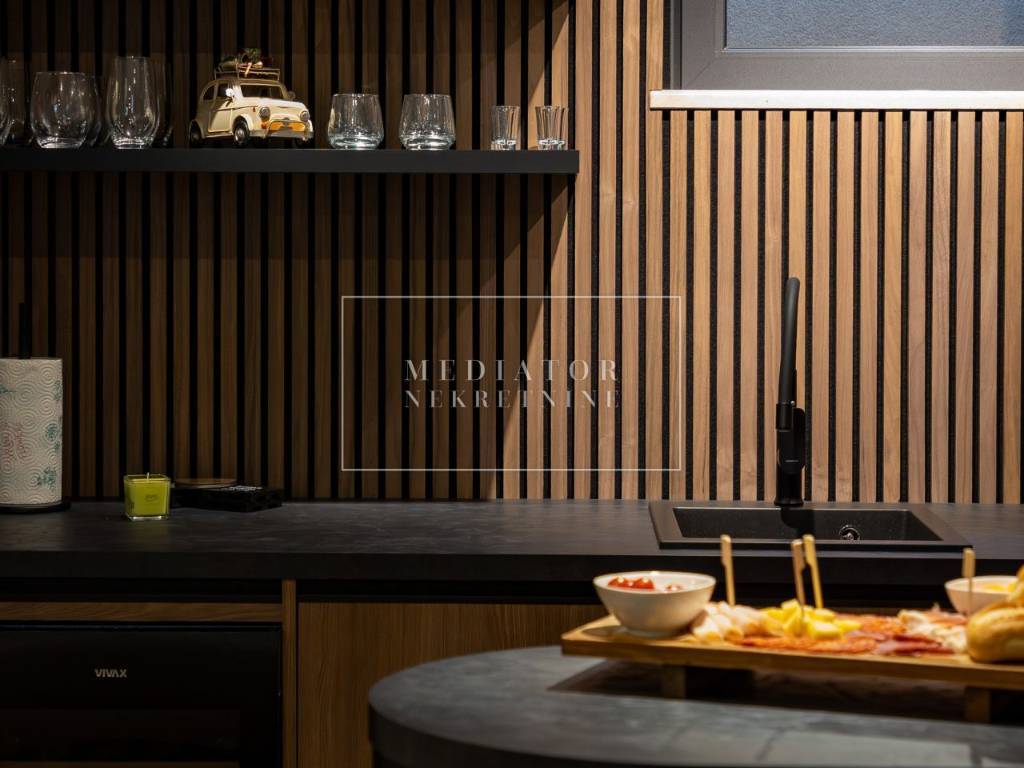 Exclusively offered by Mediator Real Estate is a luxurious detached villa in Kostrena, designed for comfortable year-round living. Situated in a peaceful and attractive location, the villa spans three levels—basement, ground floor, and first floor—and stands out with its exceptional amenities, including indoor and outdoor pools, a sauna, gym, and numerous areas for relaxation and entertainment.