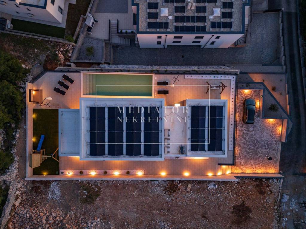 The property features underfloor heating, powered by a heat pump and photovoltaic panels on the roof.