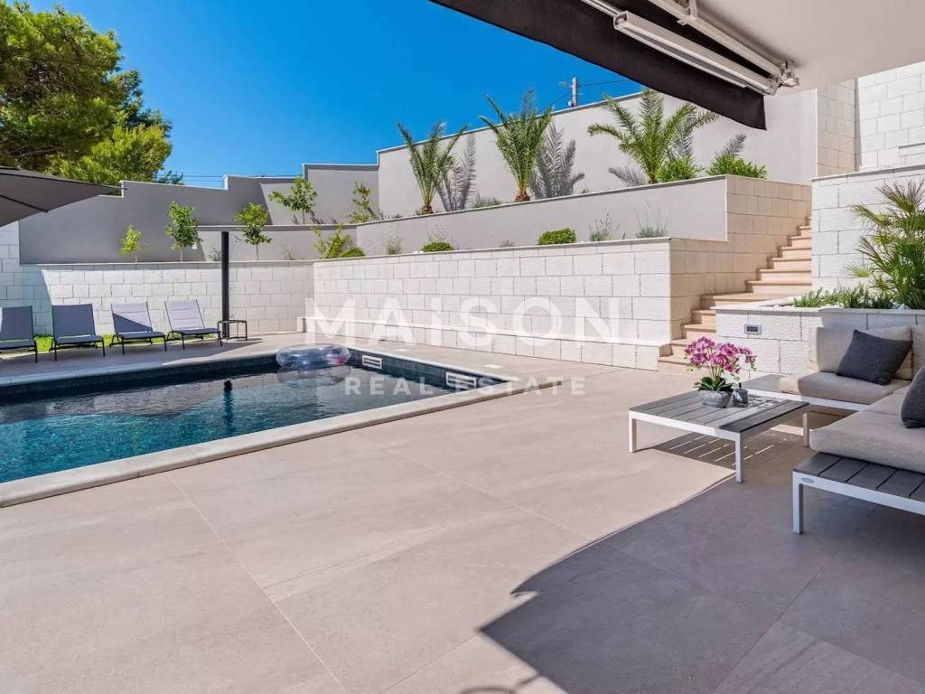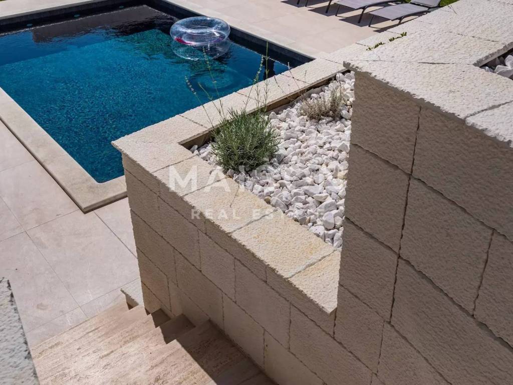 Modern villa located on the beautiful Kvarner island of Rab spans three floors and offers the utmost luxury and comfort. The ground floor features a spacious living room seamlessly connected to a fully equipped kitchen and dining area, making it a perfect space for family gatherings. There is also a bedroom with an en-suite bathroom, along with a separate living room for relaxation. For sports and entertainment enthusiasts, the ground floor includes a private gym and game room equipped with a table football, darts, and PlayStation. The spa area with a sauna and additional shower allows for complete relaxation.