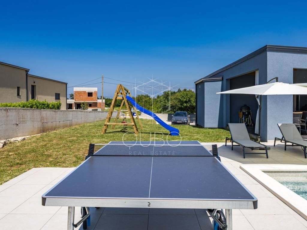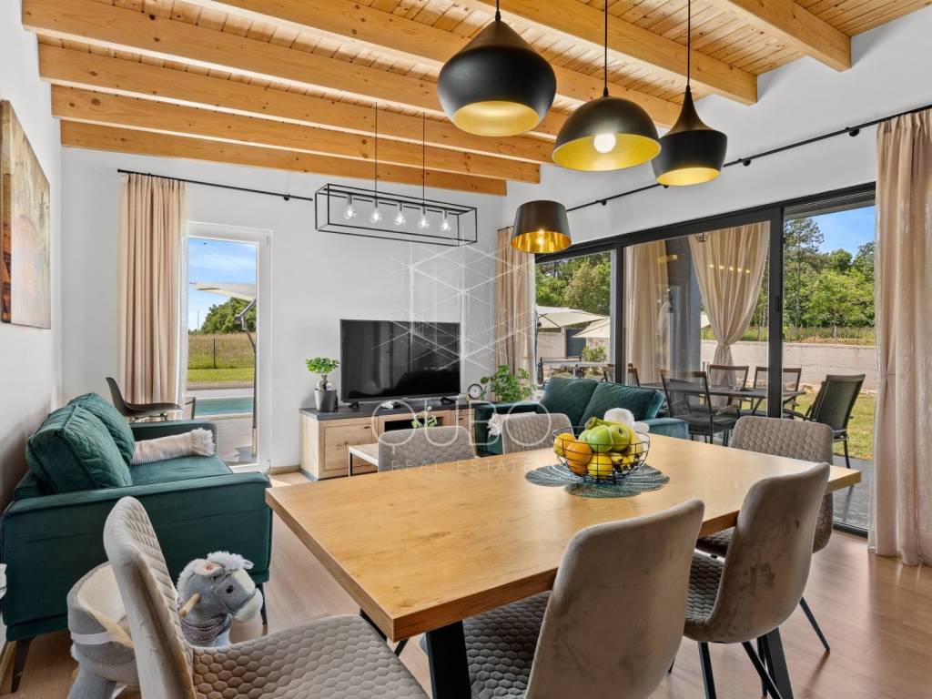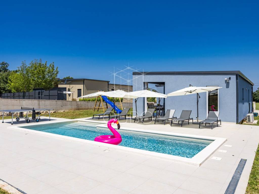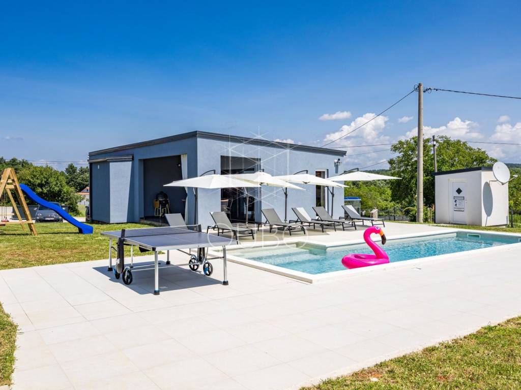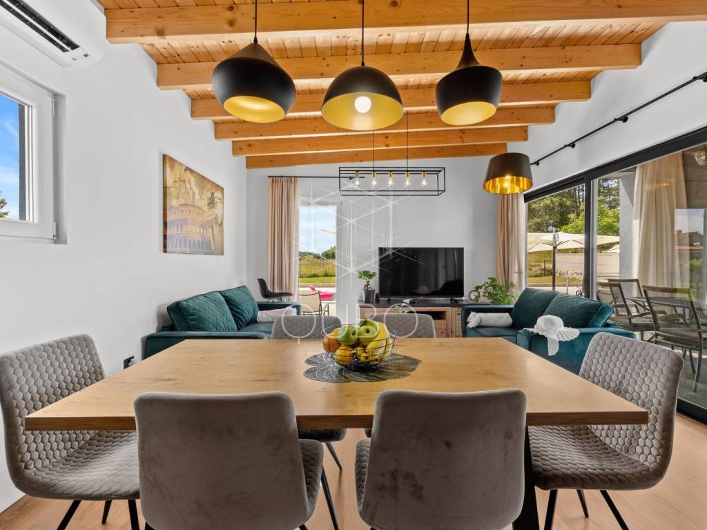 Located in the peaceful village of Krničari near Žminj, this modern single-storey villa offers a perfect blend of style, comfort, and functionality. With a thoughtful design and serene surroundings, it is ideal for both permanent residence and high-end tourist rental.