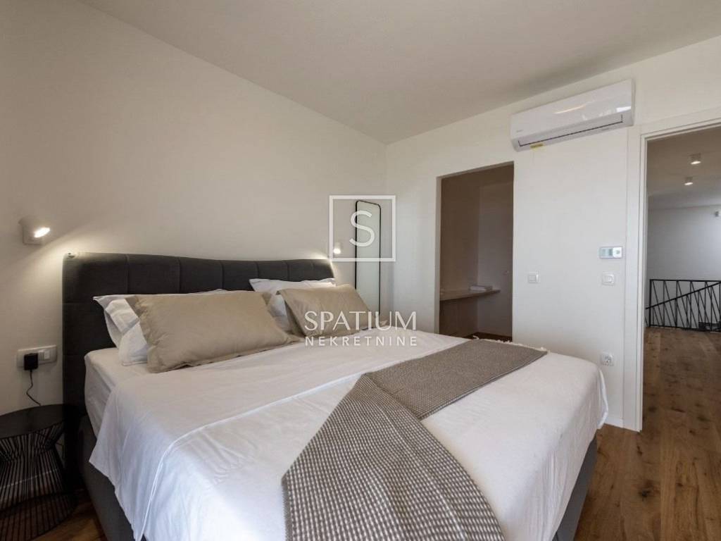 Kostrena, we have been offered a beautiful house consisting of two residential units (245m2 and 219m2) and two swimming pools. The first residential unit consists of three floors. On the ground floor there is a garage of 73 m2, from which an internal staircase leads to the first floor, where the kitchen, dining room and living room are located. The living room opens onto a beautifully landscaped garden with a heated swimming pool, a sunbathing area and a terrace. On the second floor there are three bedrooms, two bathrooms and two south-facing balconies with a wonderful view of the sea. One room is designed as a master bedroom and has a wardrobe and a bathroom. The second residential unit consists of a residential area of 219 m2 and a garage of 58 m2. In the basement there is a garage from which the staircase leads to the first floor. On the first floor there is an open space in which there is a kitchen, dining room and a spacious living room from which there is access to the garden where there is a swimming pool, sunbathing area and a terrace. On the second floor there are three bedrooms, two bathrooms and two balconies with a beautiful view of the sea. One room has its own wardrobe and separate bathroom. All floors are equipped with gas heating, and the furniture is included in the price. The property is located in an excellent microlocation, on a beautifully landscaped garden of 531 m2, surrounded by greenery and from all floors there is a view of the sea. It is close to all important facilities. Kostrena is an old popular coastal town, first mentioned at the beginning of the 15th century. It gained its first municipal independence in 1874, but kept it for a very short time, only two years. It is divided into two parts, St. Lucia and St. Barbara, according to the names of the two churches that exist in its territory. Kostrena is located in the immediate vicinity of the city of Rijeka, surrounded by the bay of Martinšćica and the Bay of Bakar. The Kostren peninsula is about 10 kilometers long and slopes slightly towards the sea coast. Beautiful beaches are located along its entire length, which are visited by thousands of bathers during the summer. The most famous and most visited are those in Žurkovo bay, followed by Smokvinovo, Svežanj, Spužvina, Podražica, Nova voda and Perilo. Kostrena consists of about twenty settlements, many of which were named after families, and today Vrh Martinšćice, Glavani, Sv. Lucija, Rožmanići, Doričići and Paveki. The characteristic karst area with Mediterranean plants and the famous Kostren thunderbolts, and the mild climate that sometimes succumbs to strong storms, are the characteristics of this region. For all other information, contact Spatium nekretnine with confidence +385 51 272 903
