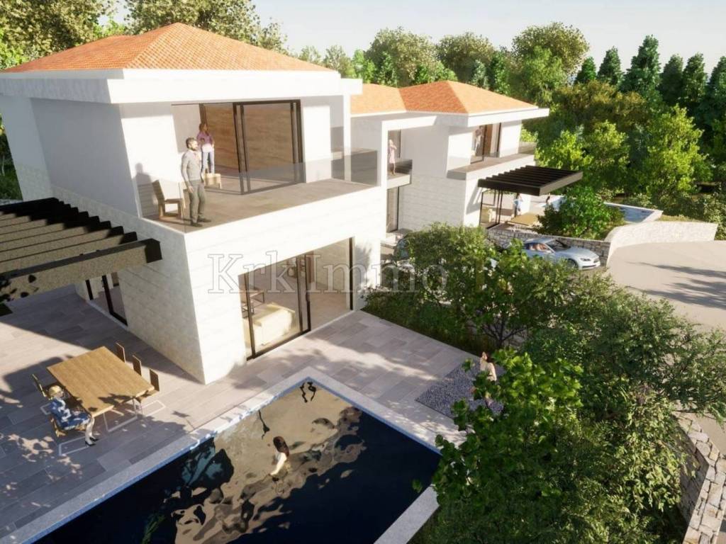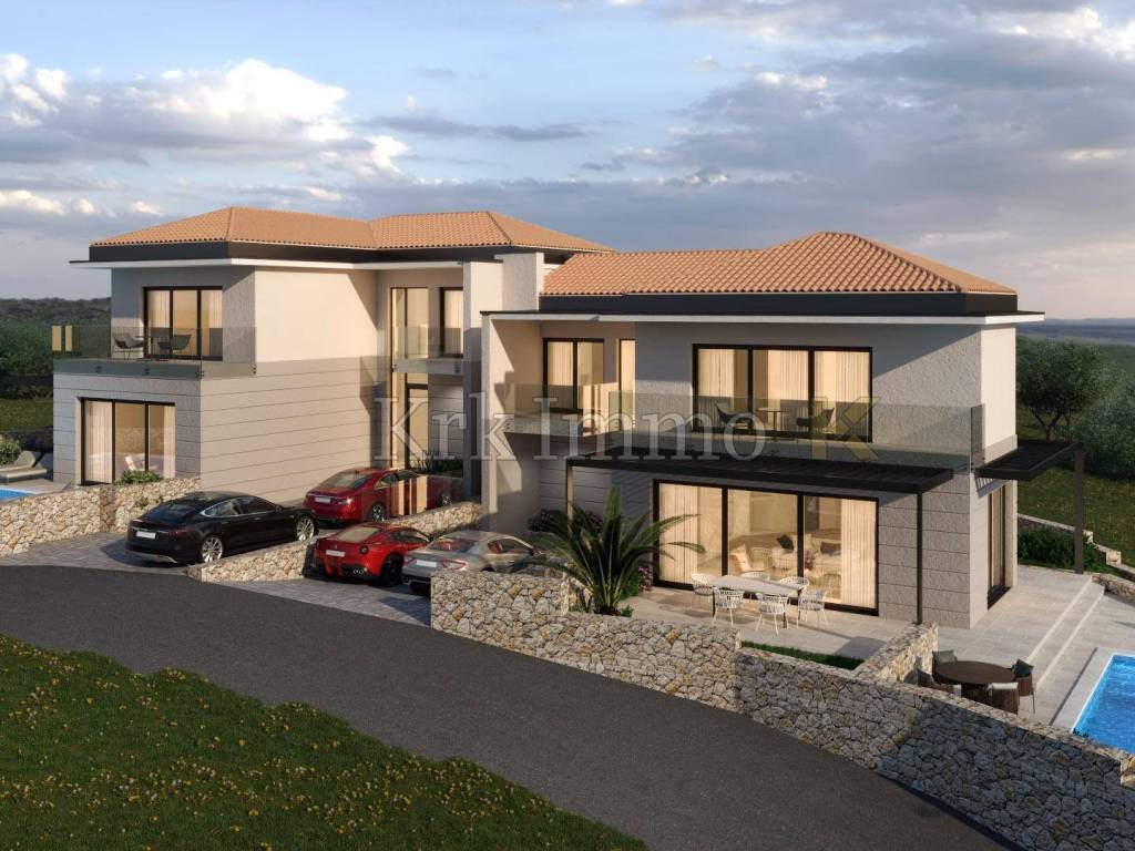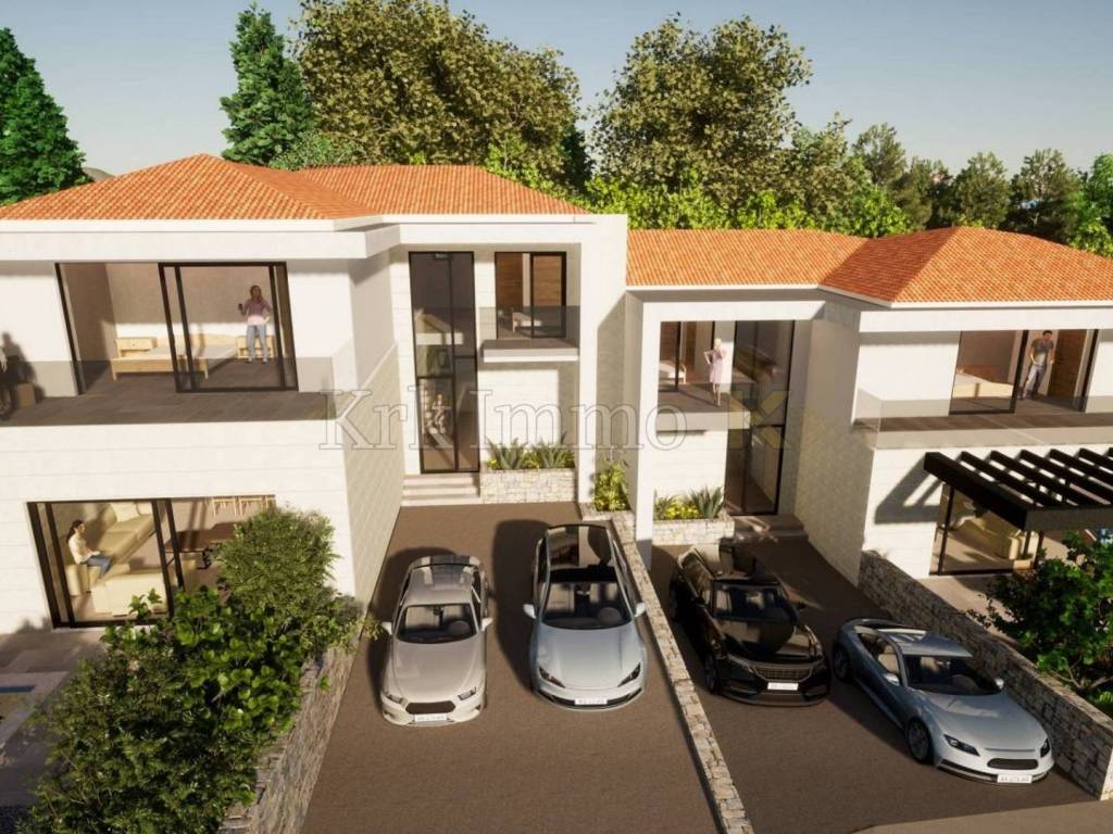 Semi-detached house with excellent equipment and a beautiful view of the sea! Real estate island Krk Top-quality house in a fantastic location just a few minutes' walk from the sea is for sale. The house consists of two floors, with a total living area of 160 m2. It has 4 bedrooms, 4 bathrooms, a kitchen, a living room and a dining room, a storage room and a large terrace. There is a swimming pool and 2 parking spaces on the 250 m2 large garden. We highlight high quality equipment and construction. Underfloor heating, air conditioning, automatic irrigation in the garden, alarm system, security doors, video intercom and glass walls that allow a lot of light are just some of the features of this exceptional property. This house is in an excellent location in Vrbnik, close to all necessary amenities, and is only 400 m away from the sea, and therefore boasts a beautiful panoramic view of the sea. Brokerage commission when concluding a legal transaction for the buyer is 3% + VAT. Krk Immo d.o.o. and lawyers guarantee you proper documentation and secure transfer of ownership. For more information, contact us and make an appointment with our lawyer or advisor. Krk Immo d.o.o. Tel: +385 98 977 9705 E-mail: info@krkimmo.com www.krkimmo.com
