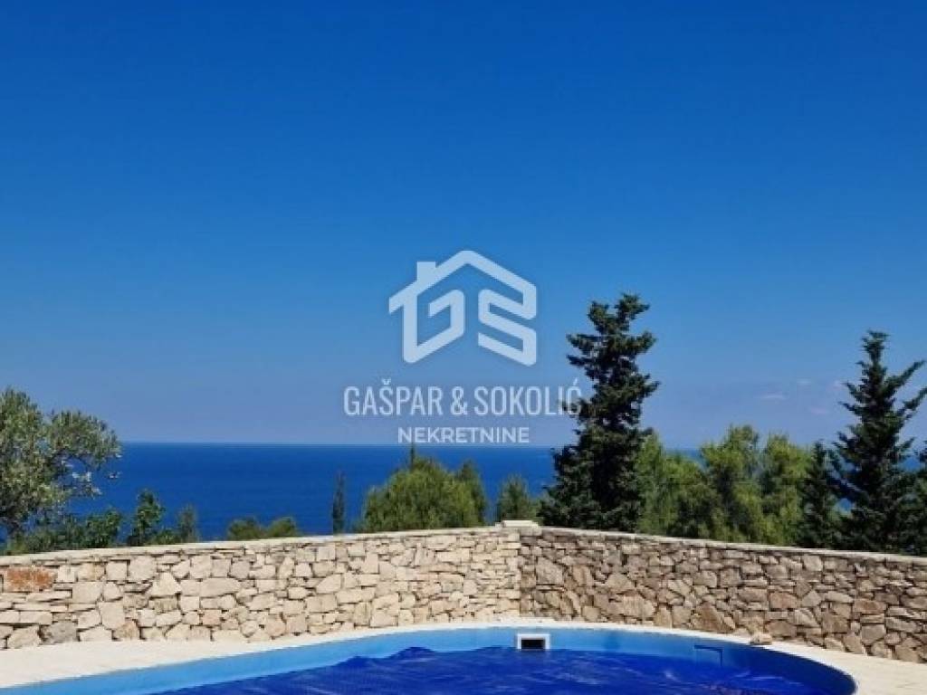 An impressive detached stone house is for sale on the island of Vis, just 850 meters from the sea. This property stands out for its rustic architecture, swimming pool, and beautifully landscaped garden, making it ideal as a private residence or a rental property for tourism.