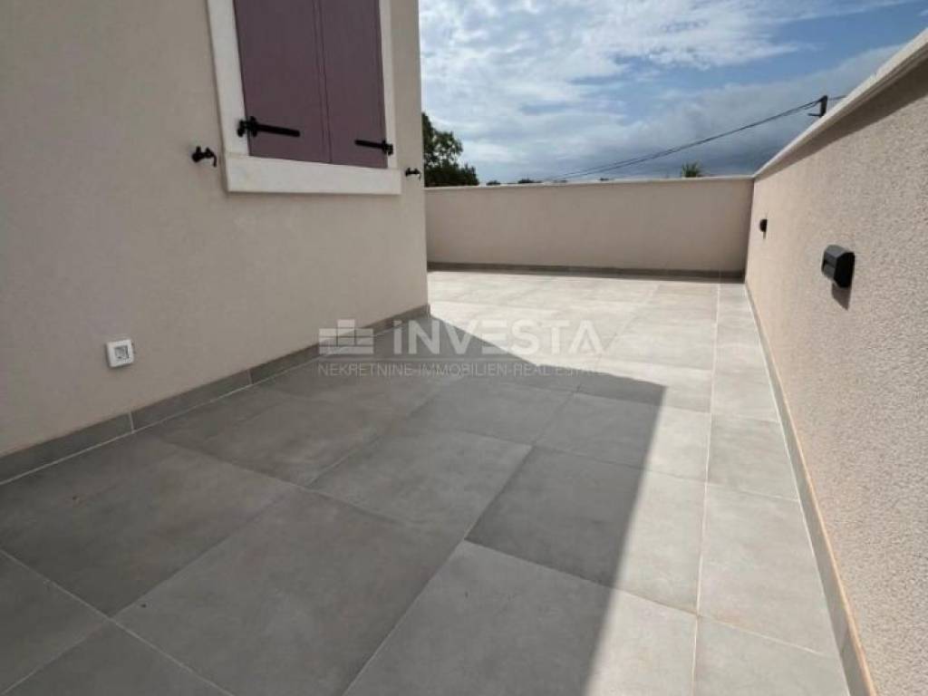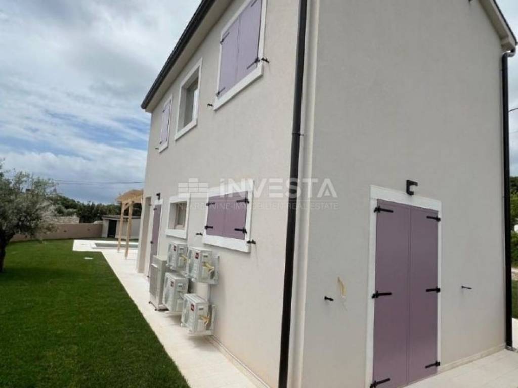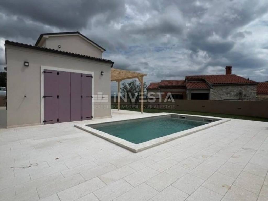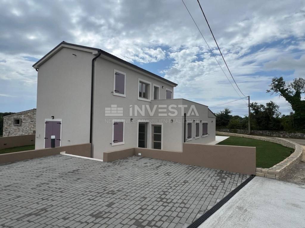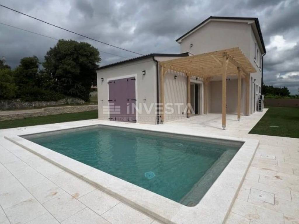 Croatia, Istria, Marčana, newly built modern villa 157m2 with a pool. A modern design villa is for sale in the vicinity of Marčana with a gross construction area of 157 m2. The location is just a 10-minute drive from the sea and the nearest beaches, with a wide selection of beautiful wild beaches. The villa consists of two floors with a net usable area of 140 square meters, ground floor and first floor with outdoor terraces on both levels, offering future owners relaxation and rest.