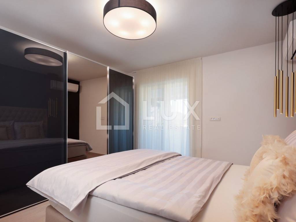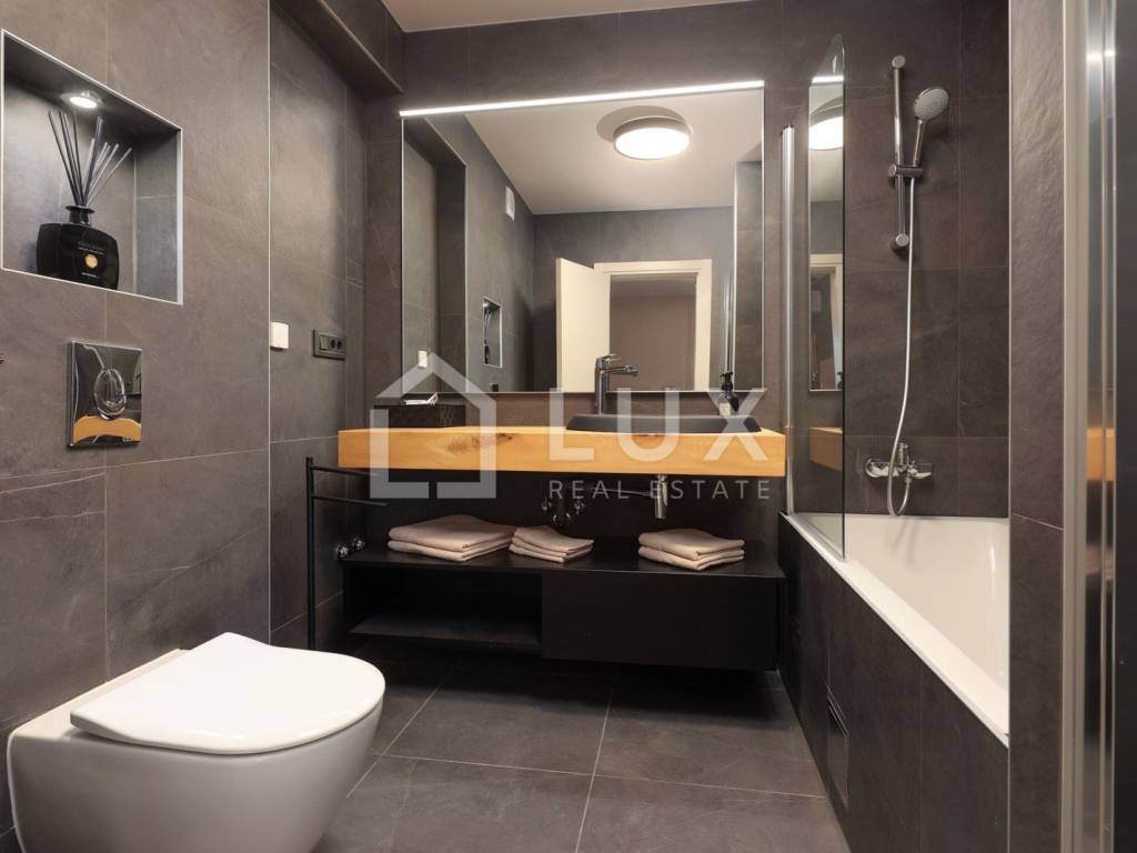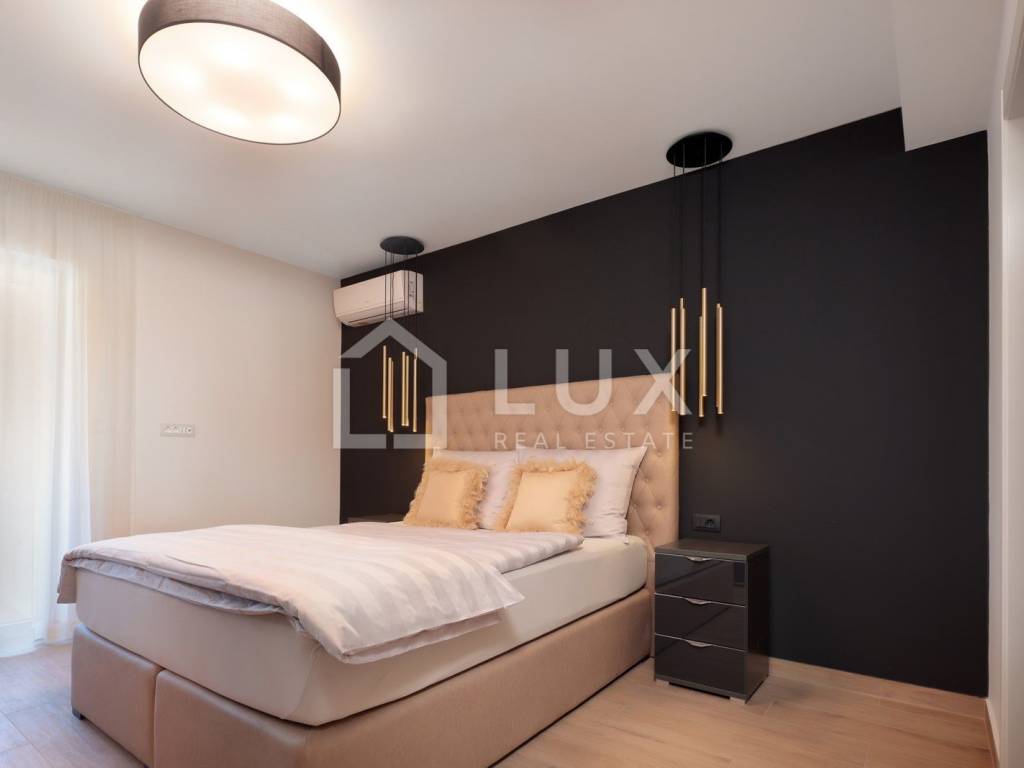 We are selling a spacious luxury apartment of 145m2 near the city center with 3 balconies and an additional basement of 196m2. Location-wise, it is ideally located close to the city center, so you are not in the very heart of the summer crowd, which gives you the desired peace, while you can go on foot to the center, which is exactly 850m away.