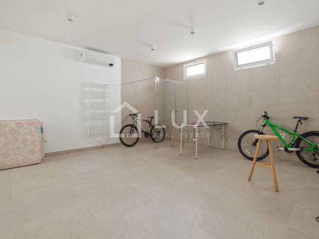 The property is divided into three floors, i.e. basement, ground floor and first floor. The villa is sold fully furnished, which means that it is automatically ready for moving in. So, three bedrooms, three bathrooms, two toilets, living room, kitchen, dining room, three storage rooms, a home cinema and a room that - according to your wishes - can become a sauna. Everything is luxuriously furnished and made of the finest materials, for people who know what they want. You have underfloor heating, an air conditioning unit, and optical internet.