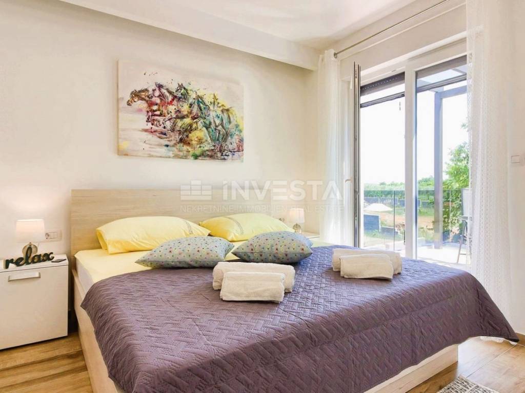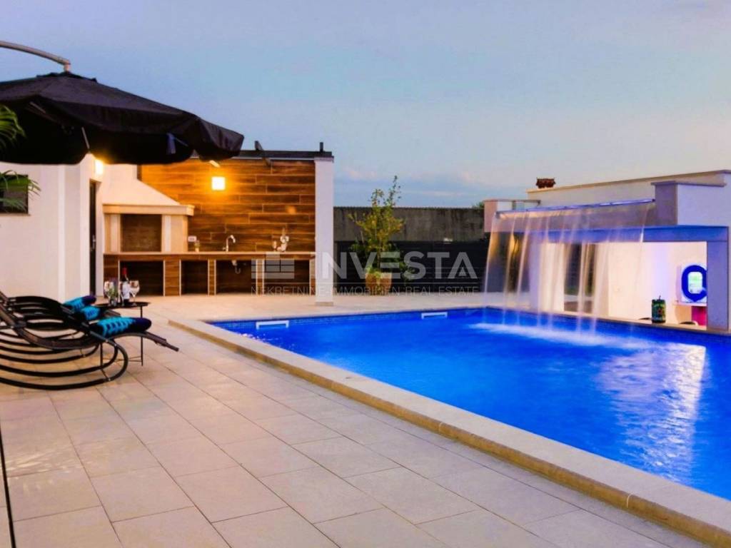 For sale is a luxurious villa with a swimming pool located in the peaceful village of Loborika, near the city of Pula.