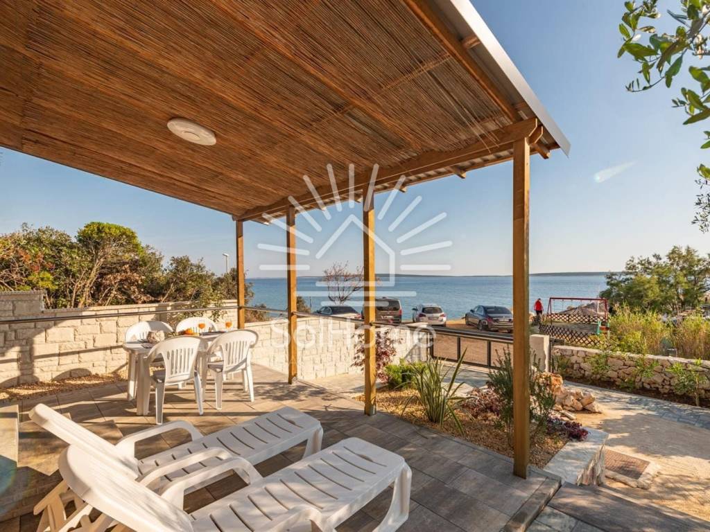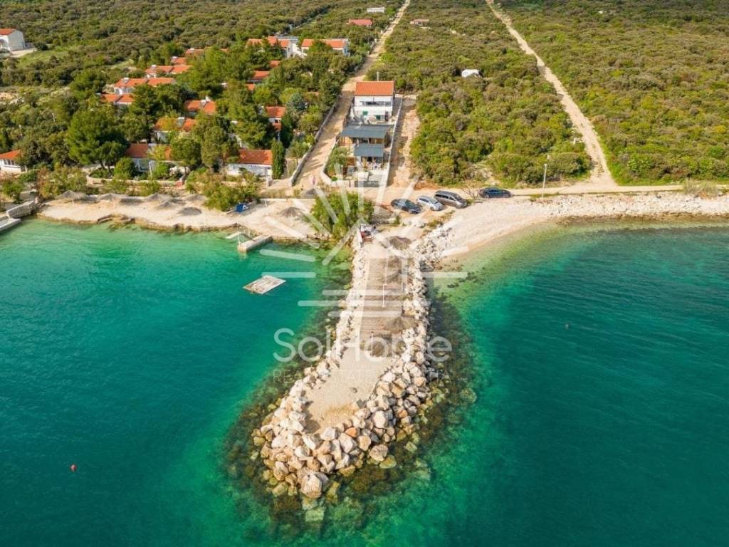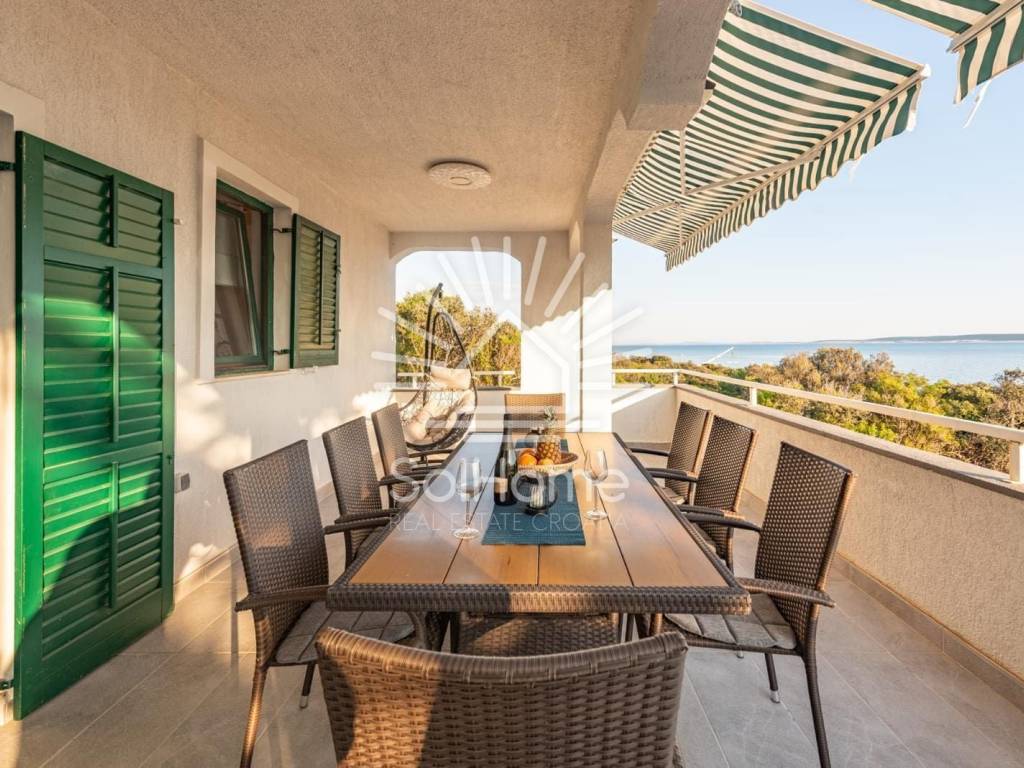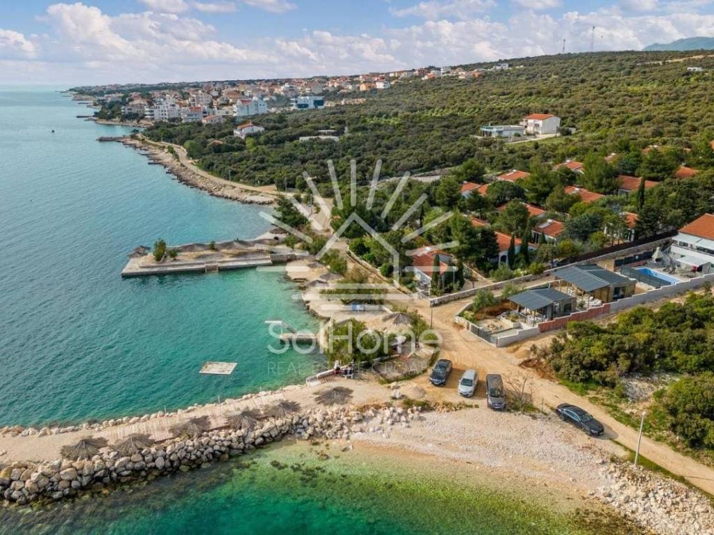 For sale is an impressive property in the Zadar region, covering an area of 163 m², located in an exceptional seafront location. The estate stretches across 518 m² and features a magnificent infinity swimming pool and a spacious garden.