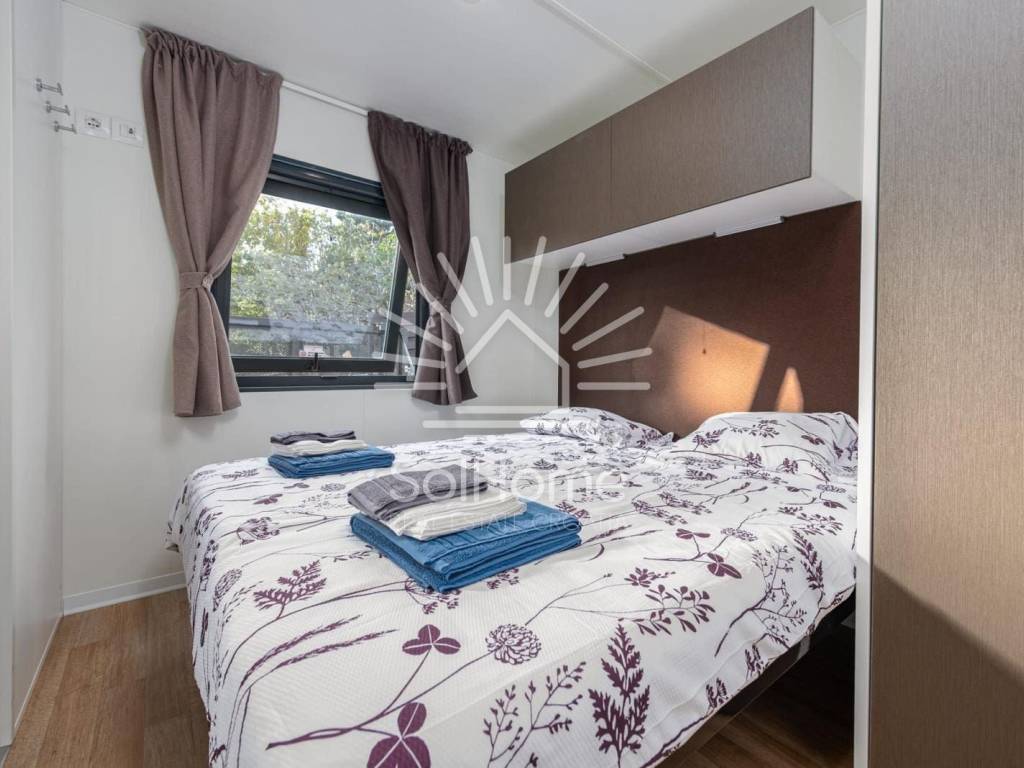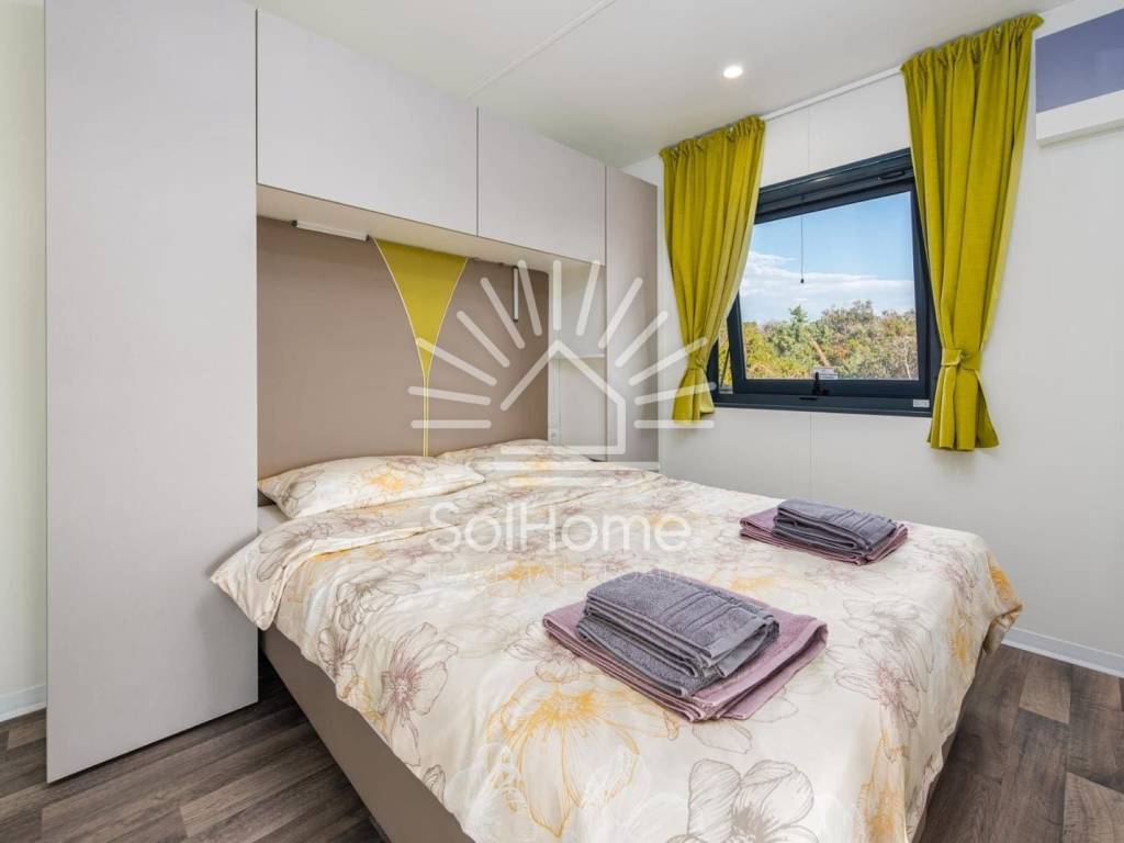 The second mobile home has 25 m² and includes a bedroom, kitchen, bathroom, and a terrace.