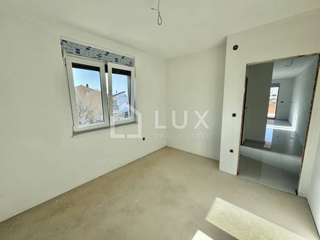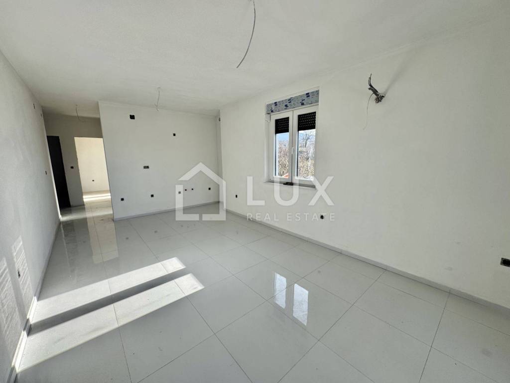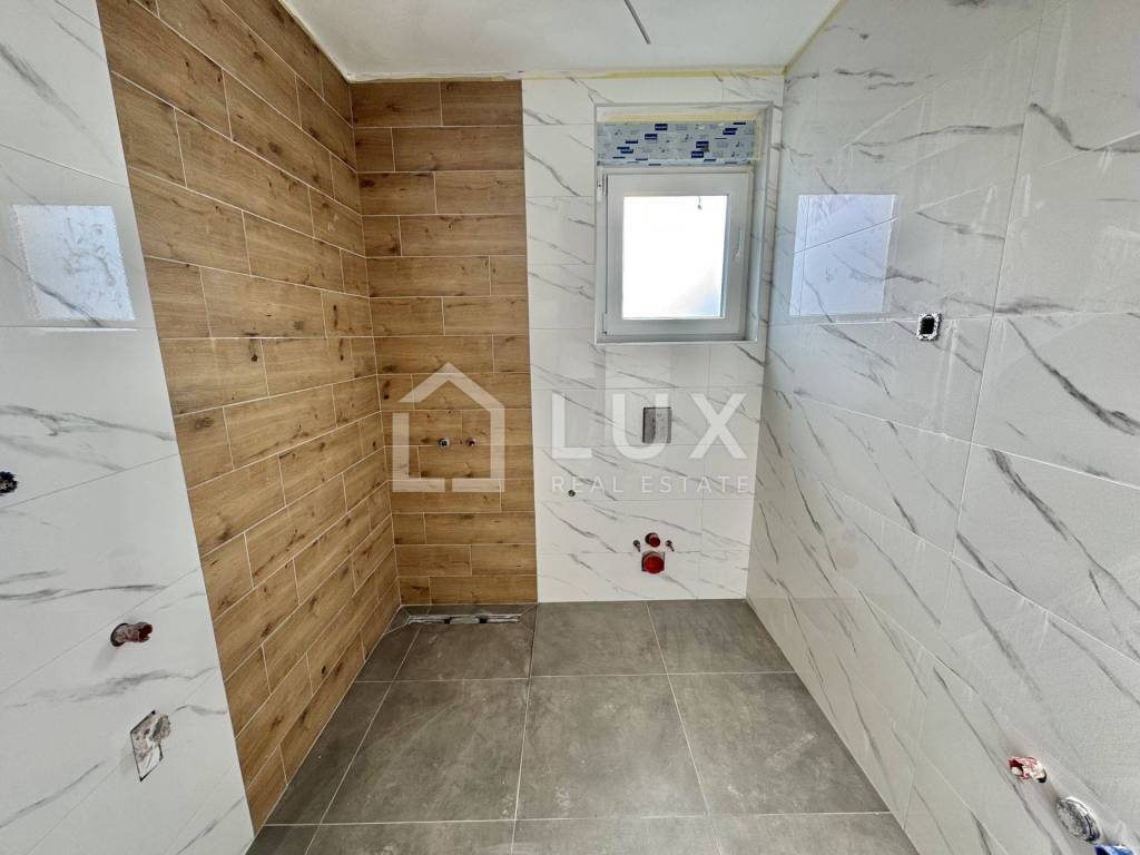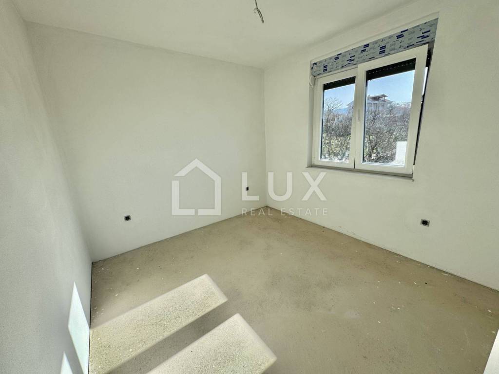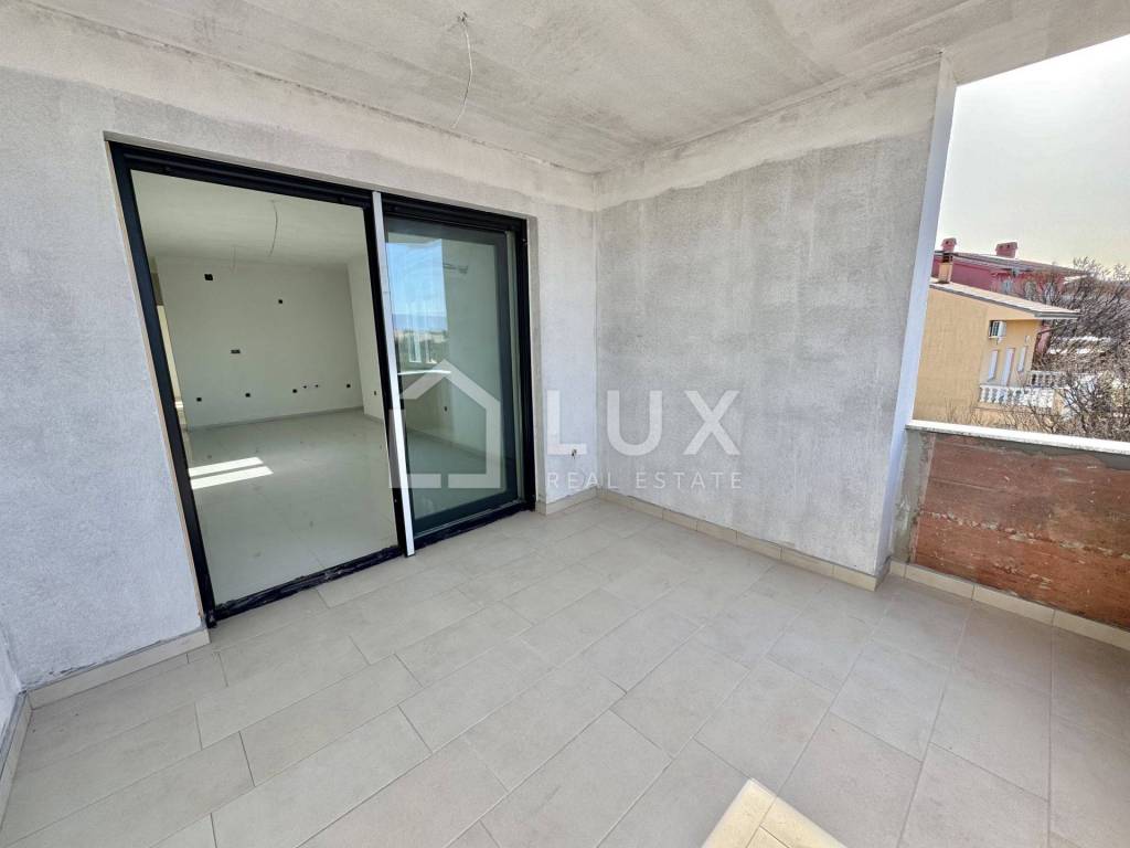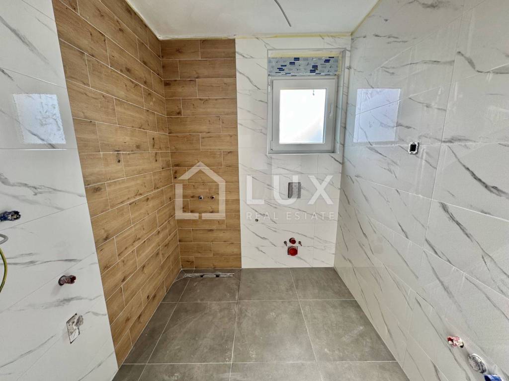 The apartment is located on the 2nd floor of a small residential building and consists of an entrance hall, an open-plan living room with a kitchen and dining room, a bathroom, two bedrooms, a utility room and a spacious loggia with a sea view. The apartment also has one parking space.