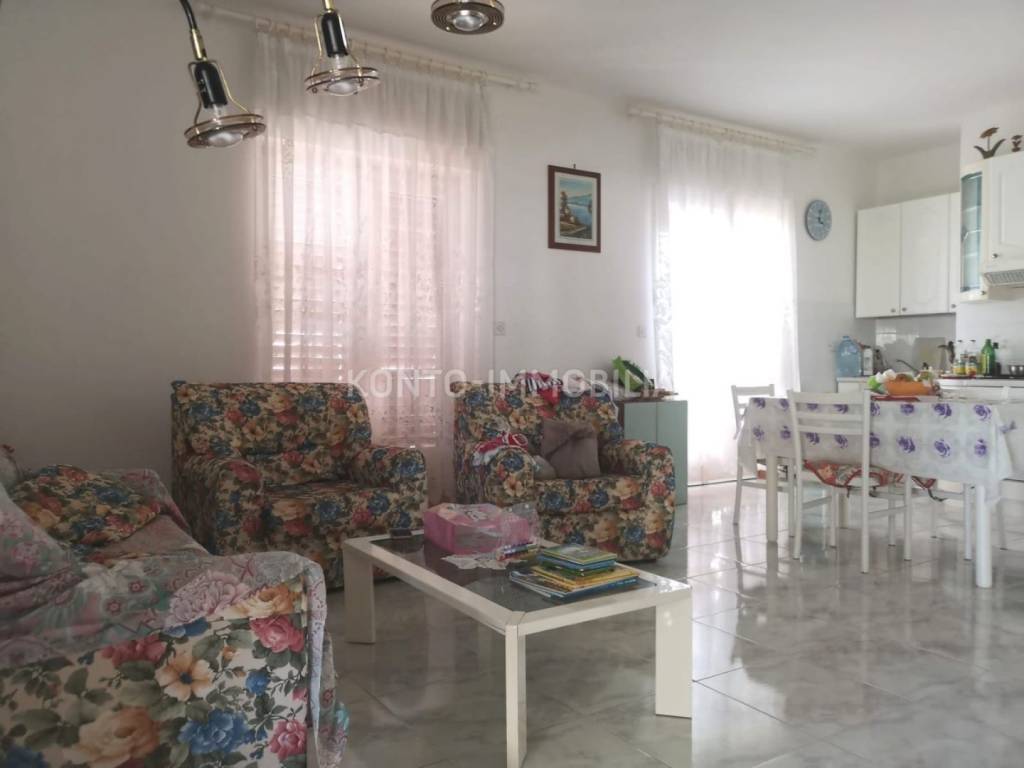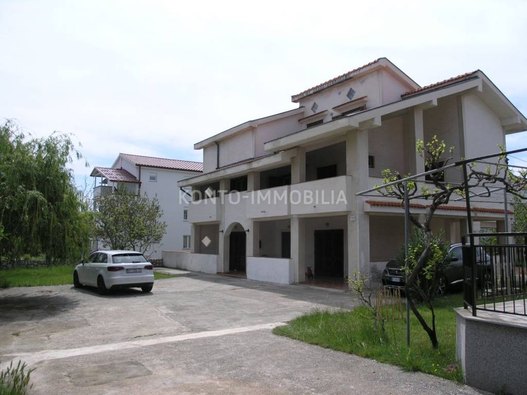 House in a beautiful location, in the central part of Lopar, close to all necessary facilities, and near the sandy beach. The living space is spread over three floors and has a total of 3 apartments + studio apartment and garage. On the ground floor there is one apartment, which consists of a kitchen with dining room and living room, hallway, two bedrooms and a bathroom, and additional rooms, terraces and garage space, net area of 140.38 m2. The first floor has a net area of 135.93 m2 and is divided into two apartments: one apartment consists of a kitchen with dining room and living room with access to spacious terraces and balcony, bedroom and bathroom, and a separate studio apartment with a spacious covered terrace . In the attic there is a newly decorated apartment with a net area of 63.50 m2, which consists of a kitchen with dining area and living room, two bedrooms, hallway, bathroom and balcony. The house is located in a beautiful setting overlooking the greenery. It is well maintained and requires additional investment in exterior carpentry and facade. The interior has a nice layout, the floors are tiled and parquet. All rooms in the attic have built-in air conditioning, and the house has a chimney. Very interesting property.