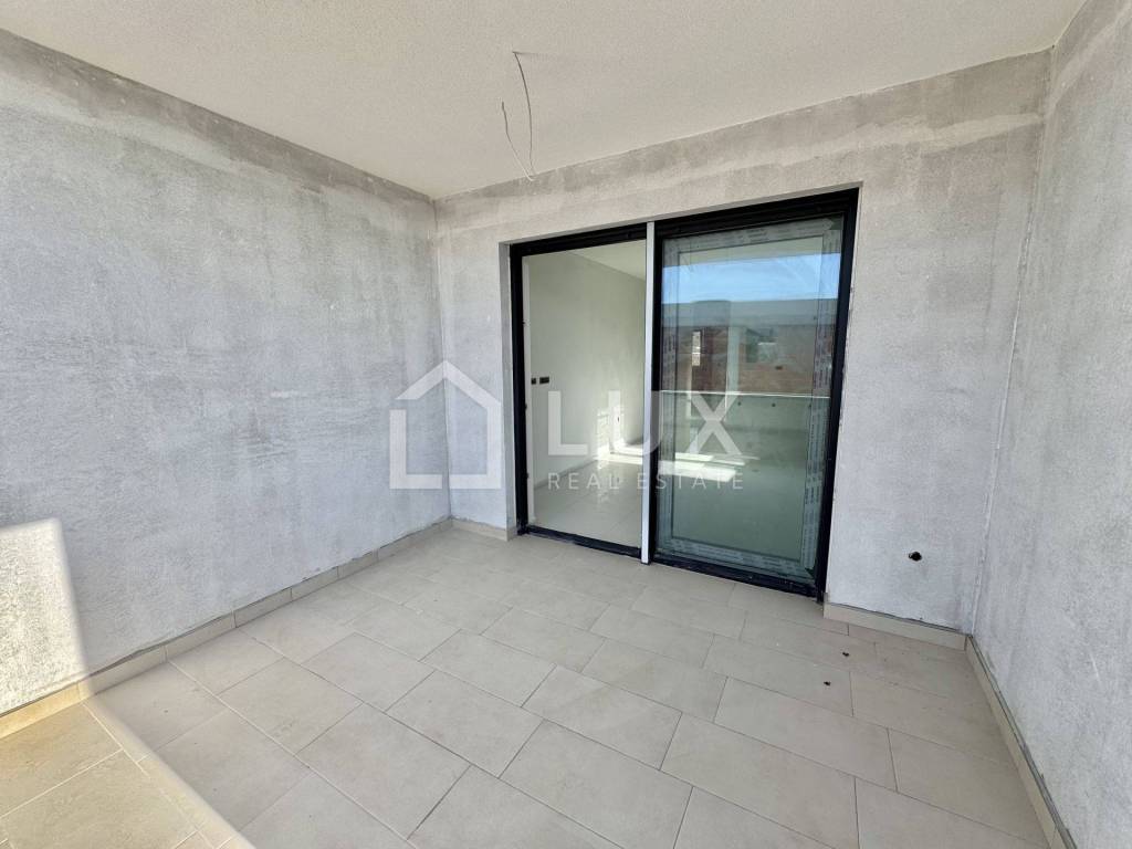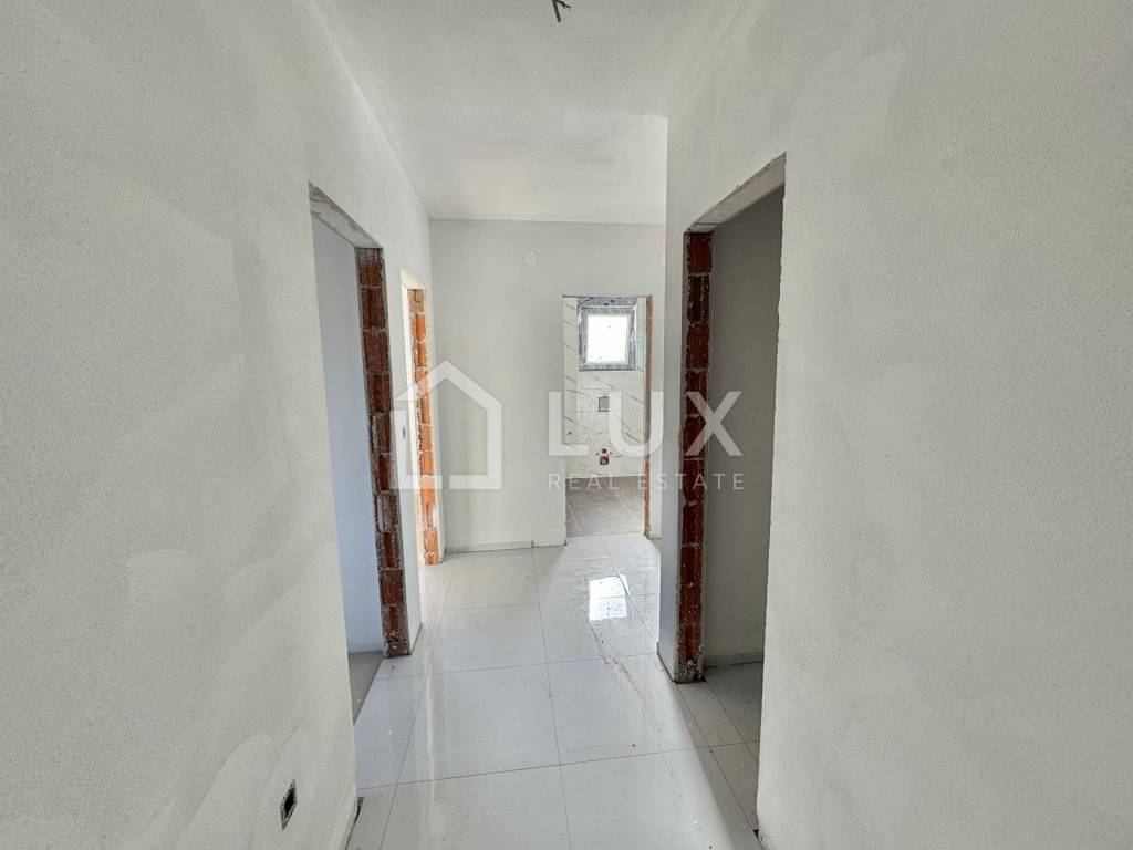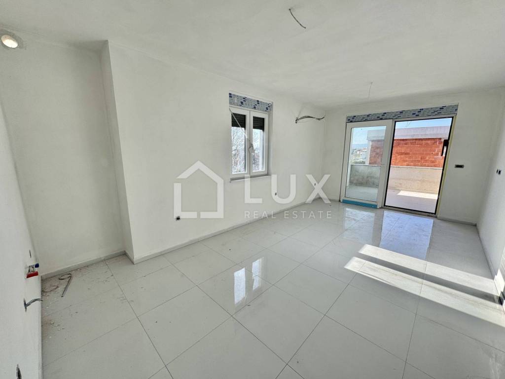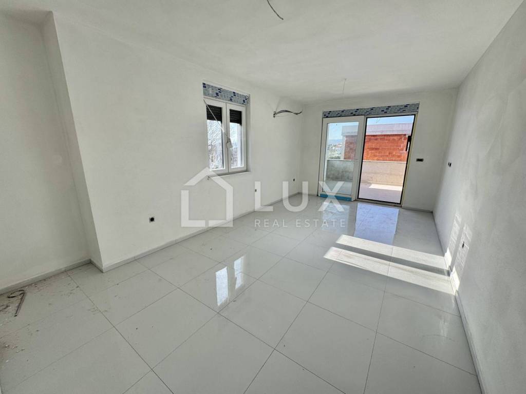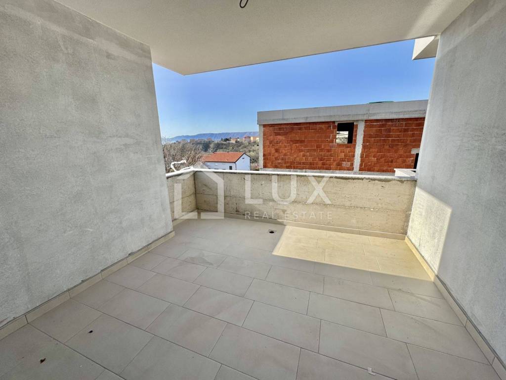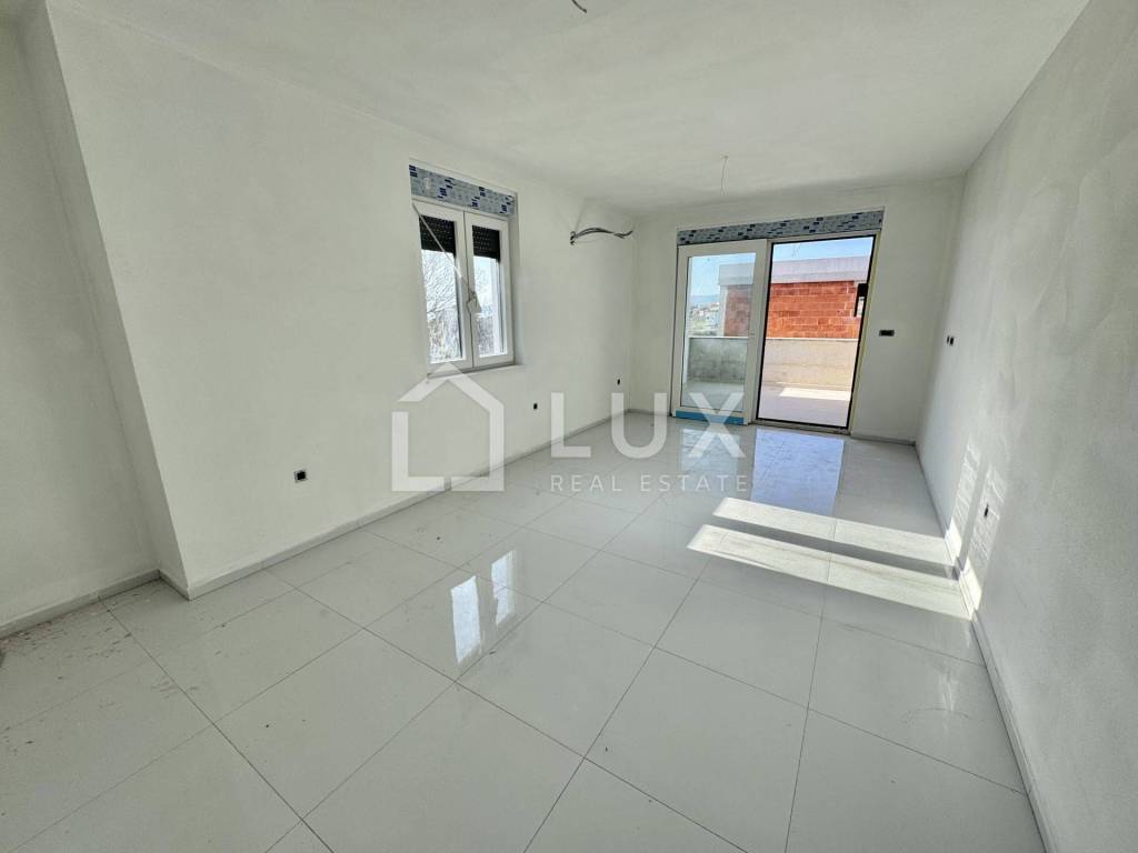 The apartment is located on the 1st floor of a small residential building and consists of an entrance hall, an open-plan living room with a kitchen and dining room, a bathroom, two bedrooms, a utility room and a spacious loggia with a sea view. The apartment also has one parking space.