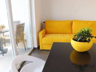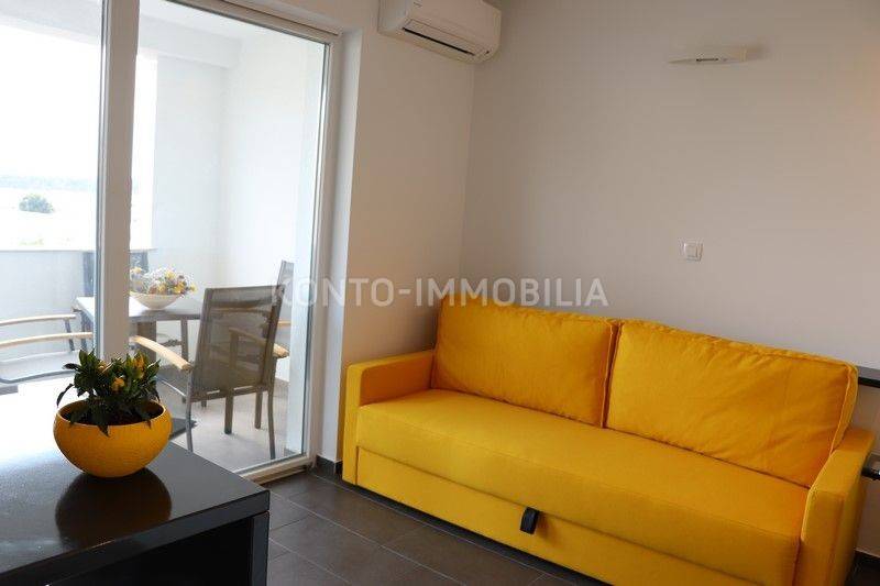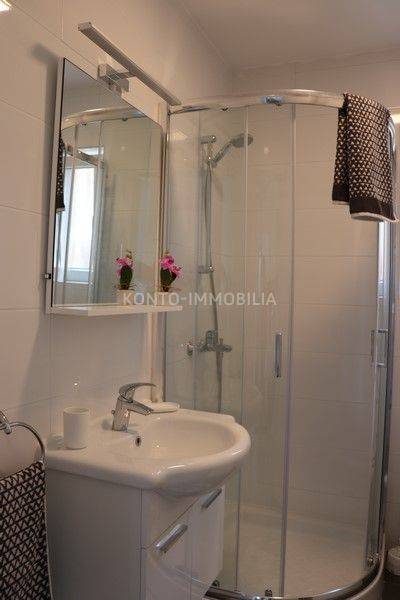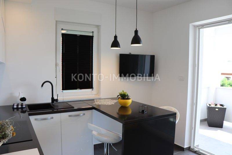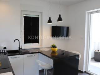 Modern apartment in a new building, on the 1st floor, 40 m2. Consists of a hallway, kitchen with dining room and living room, bedroom, bathroom and spacious terrace. Fully furnished and equipped with all appliances, air-conditioned. Private parking in the building's yard. Only 3 minutes walk from the business center, and only 10 minutes walk from the old town center and the sea. Long-term rental only. The apartment is available from 01.01.2026. Flat-rate monthly utility costs are not included in the rent and amount to EUR 80.00. Two months' rent deposit.
